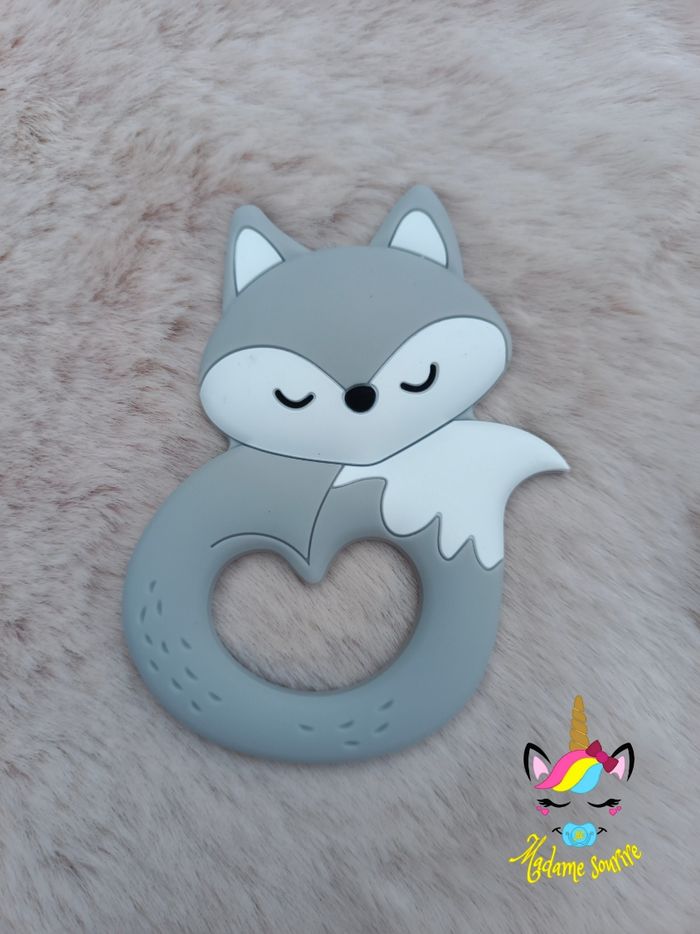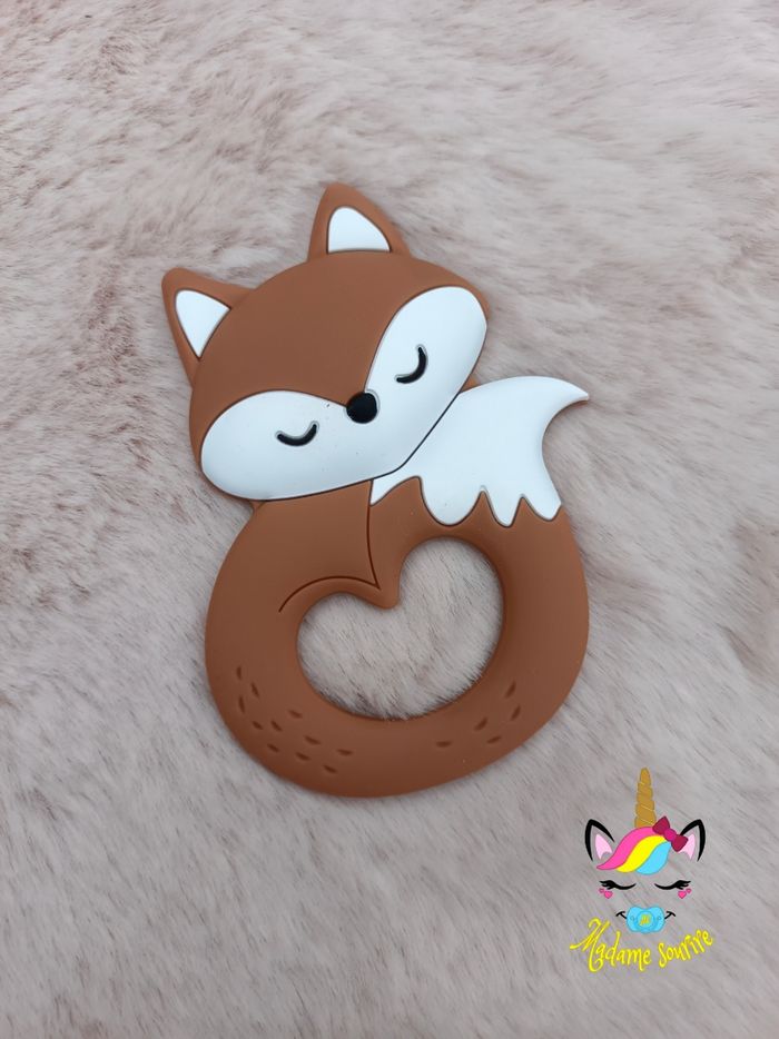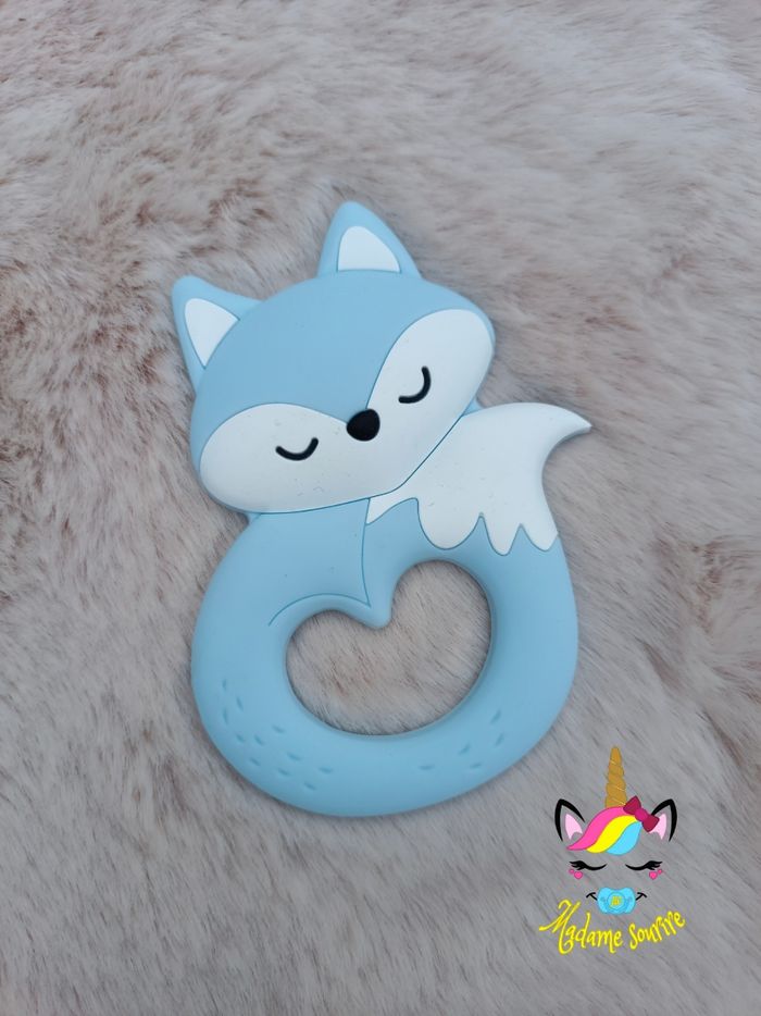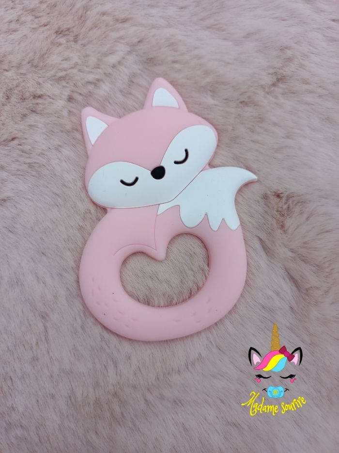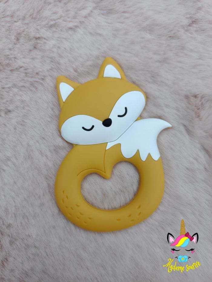 Un jouet de dentition Renard pour soulager les poussées dentaires de bébé, peut être donner seul ou attacher à une attache tétine à la place de celle-ci. Respect des normes CE, composé de silicone alimentaire, plusieurs coloris disponibles.