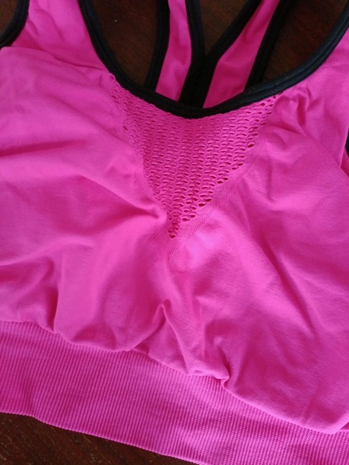 Brassière de sport femme rose fushia flashy et noir Taille L Très bon état car jamais porté