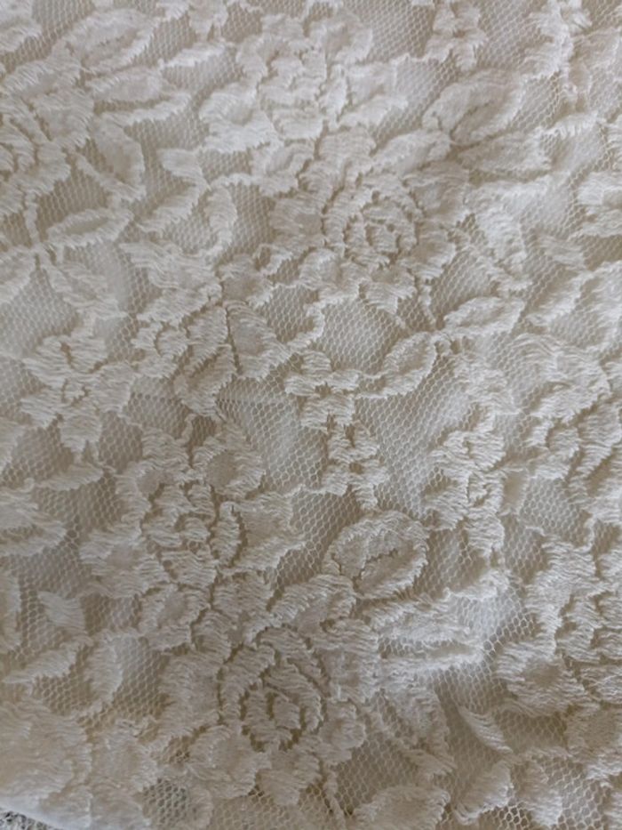 Très bon état Porté très peu En dentelle mais non transparent car il y a une doublure Blanc crème Taille M