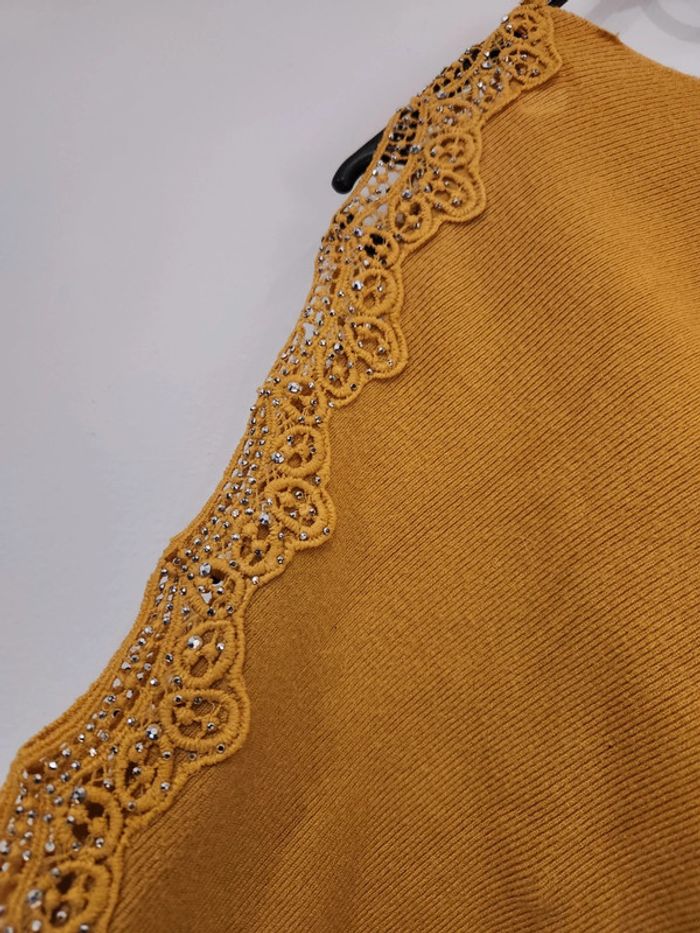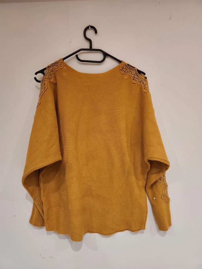 Pull moutarde strass excellent état taille unique