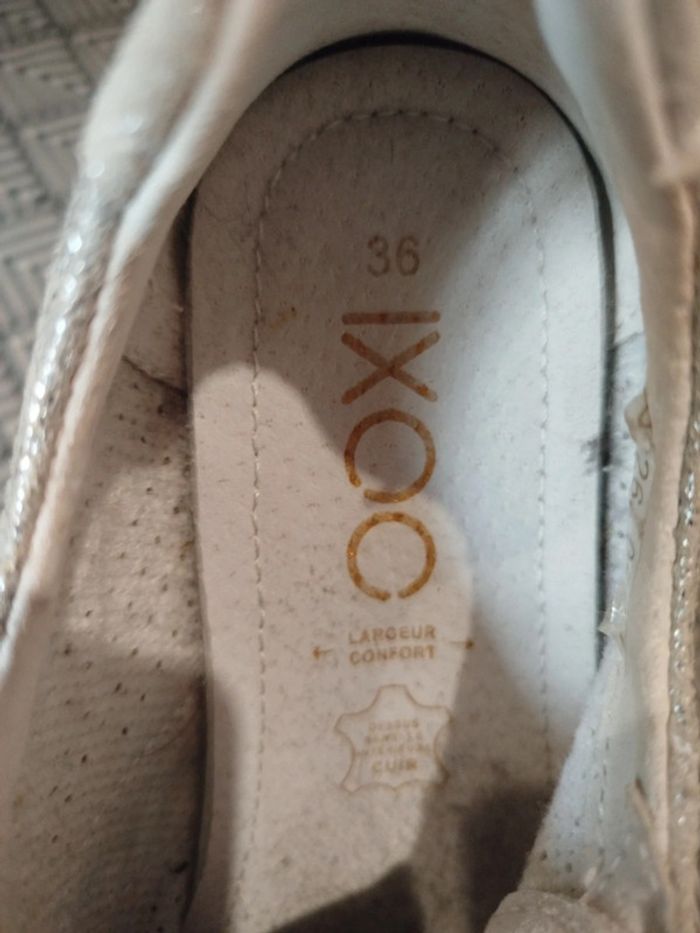 Excellent état, porté une fois. Beige/argenté. Dessus semelle intérieure cuir.
