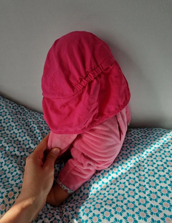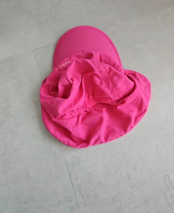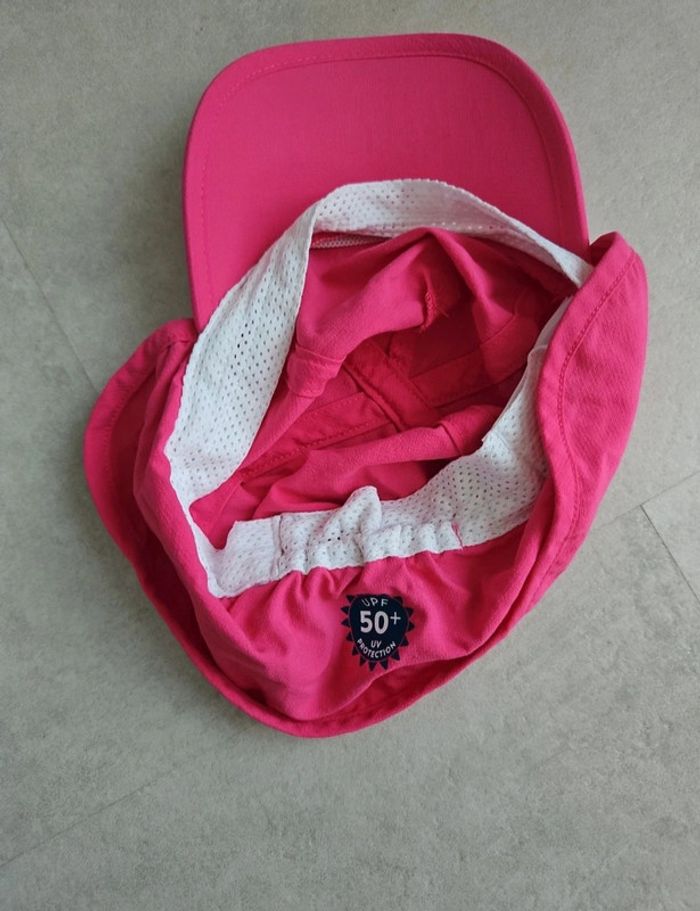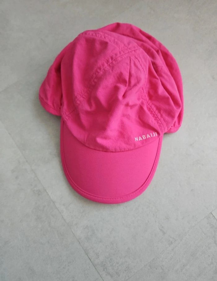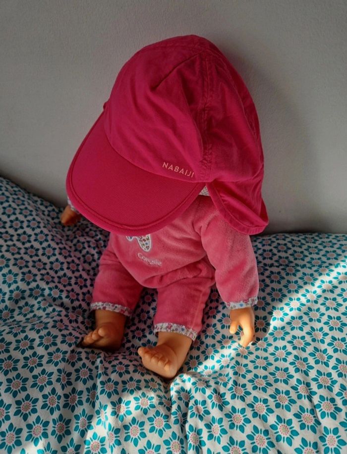 Casquette anti-uv pour piscine et plage Nabaiji de decathlon. Couleur rose. En très bon état, peut servi. Taille 18/24m. 47a 49cm. #cyndie17bébé #cyndie174bébé18m #cyndie174bébé24m #casquetteantiuvfille