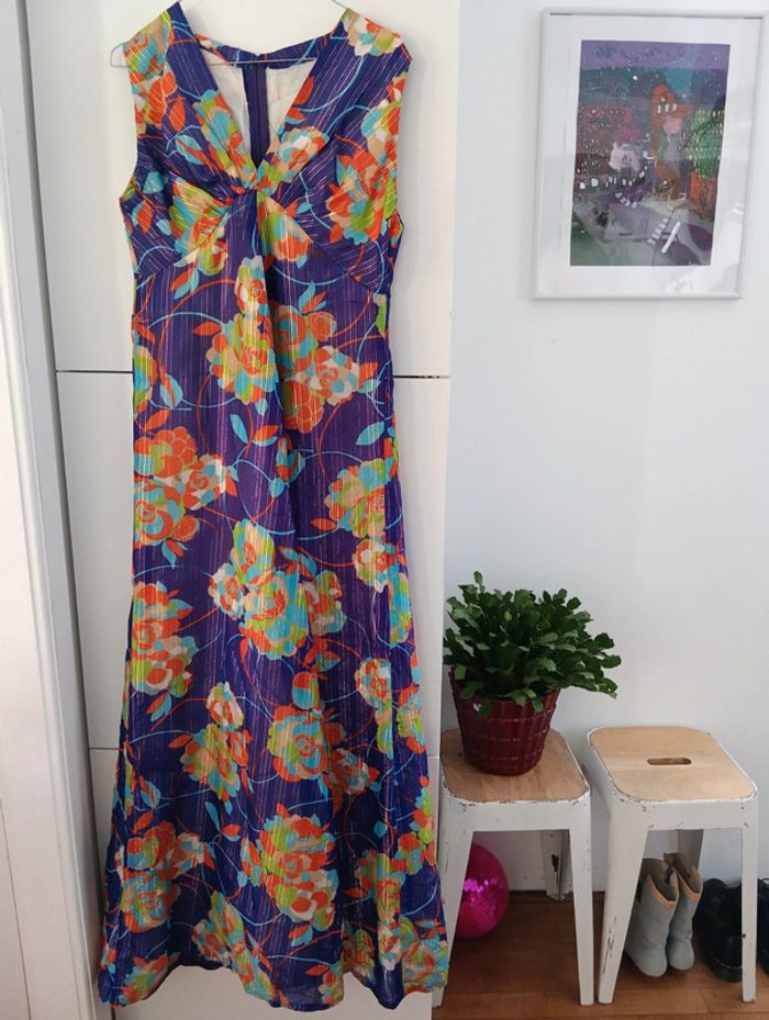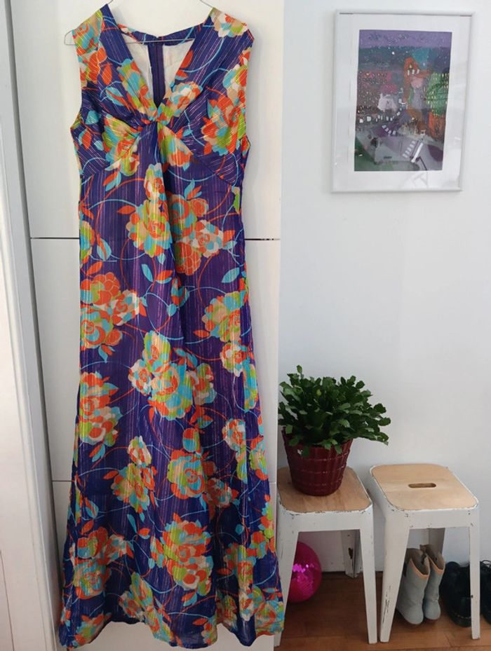 Magnifique robe longue vintage violet a fleurs handmade - photo numéro 2