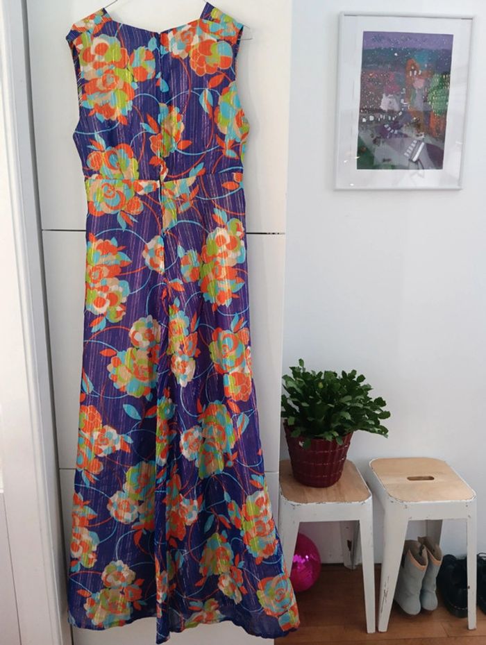 Magnifique robe longue vintage violet a fleurs handmade - photo numéro 6