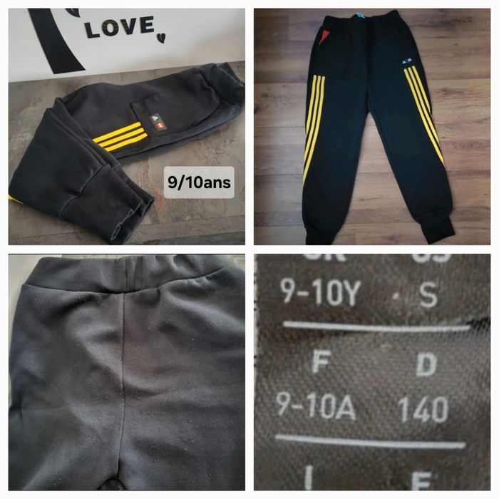 Bas de jogging adidas lego /pantalon de survêtement Taille 9 /10 ans Légère bouloches sur les fesses de ce fait je met bon etat sinon il est en parfait etat Le jogging est super sympa