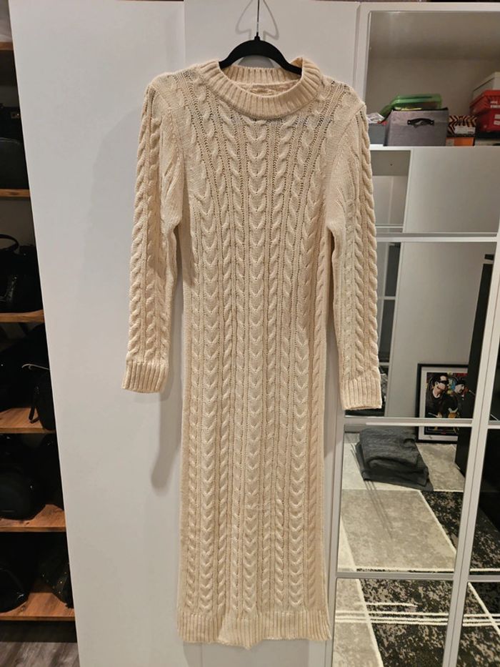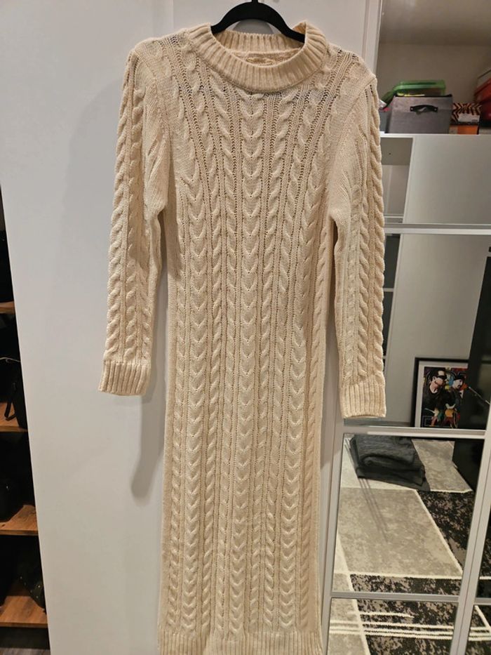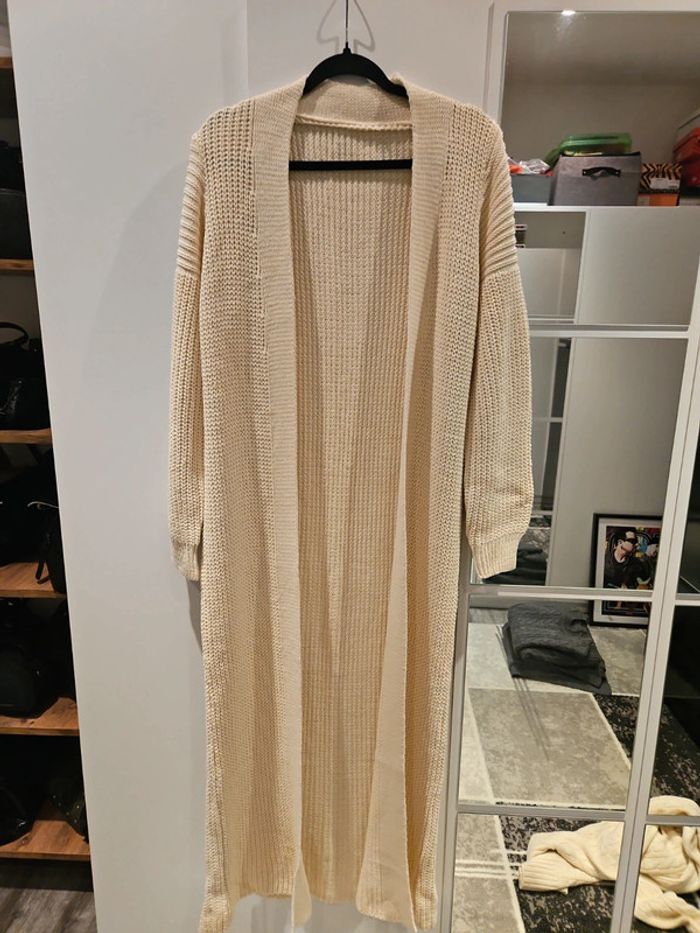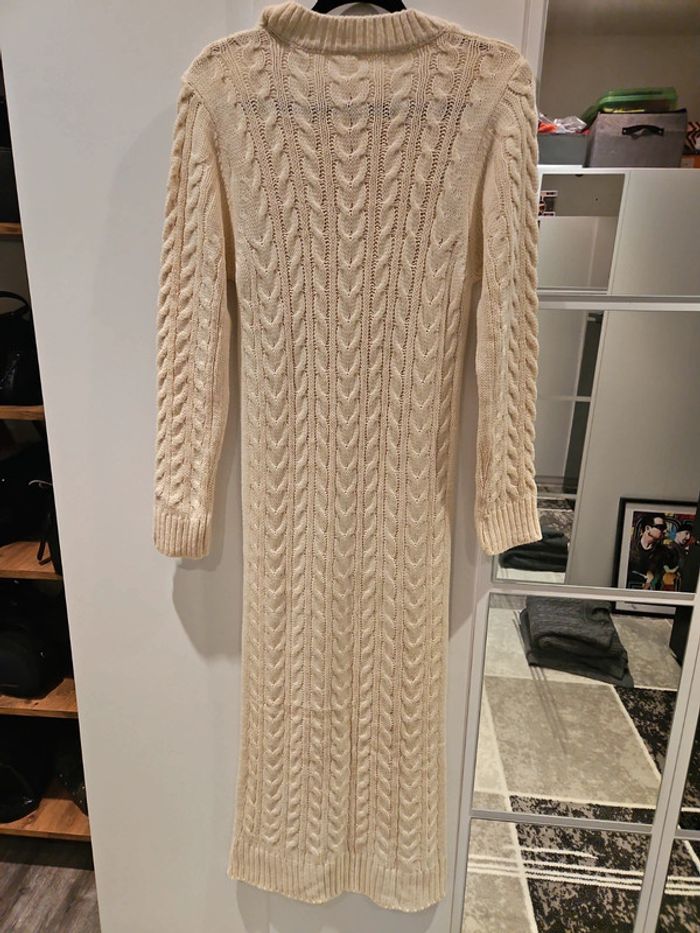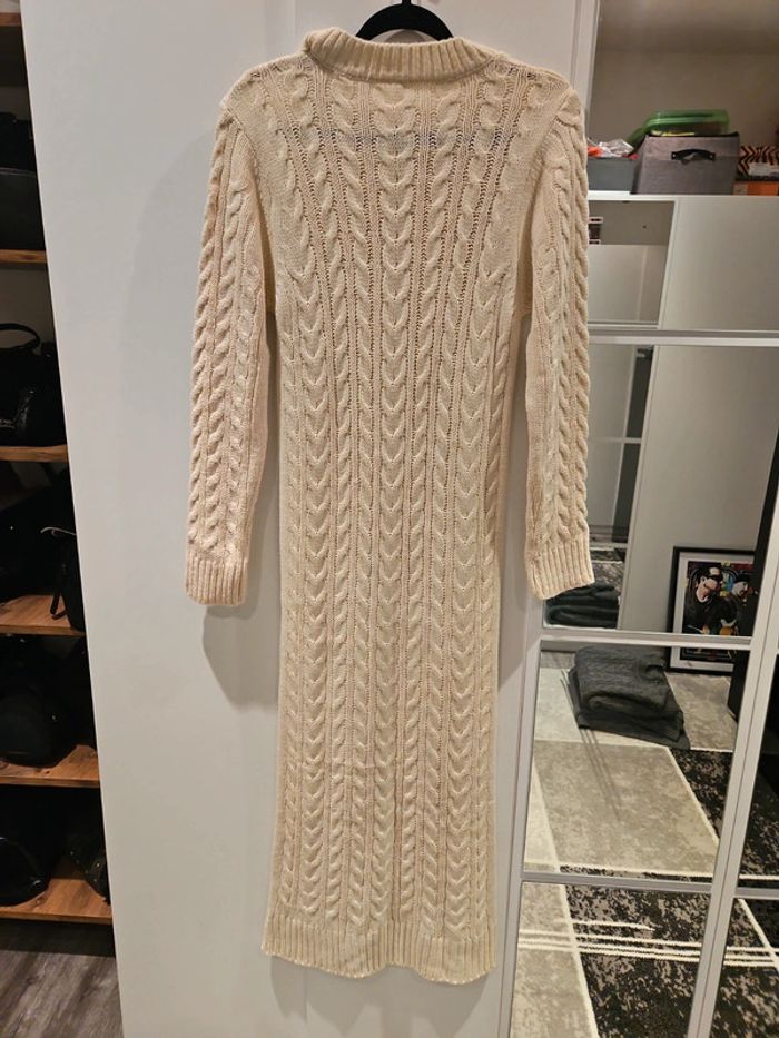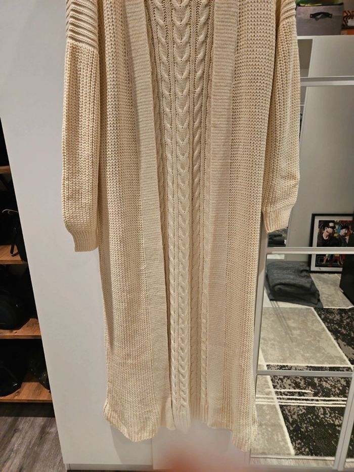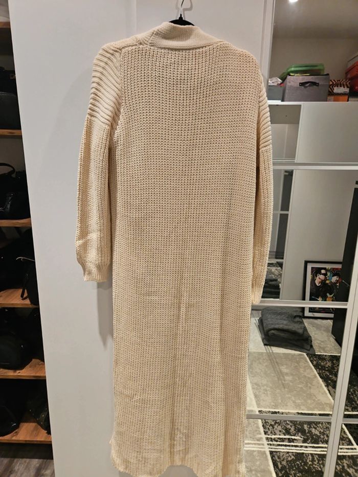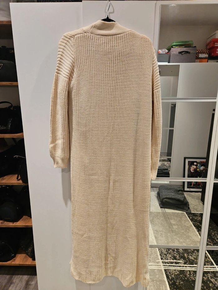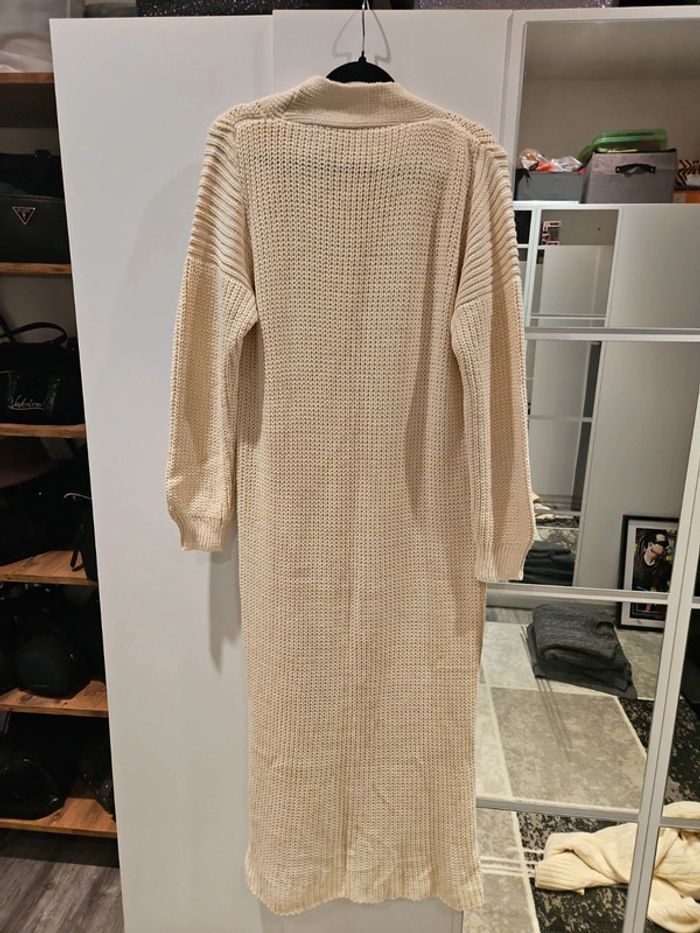 Ensemble en maille épaisse avec sa robe pull longue en maille torsadée, près du corps, et son cardigan long et ample. Taille unique. Neuf jamais porté. #Lili0405robeslongues