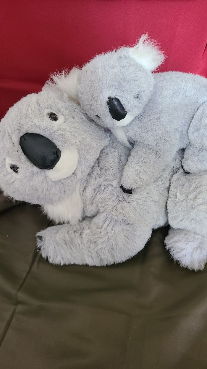 Peluche Koala maman et bébé allongé gris blanc - photo numéro 1