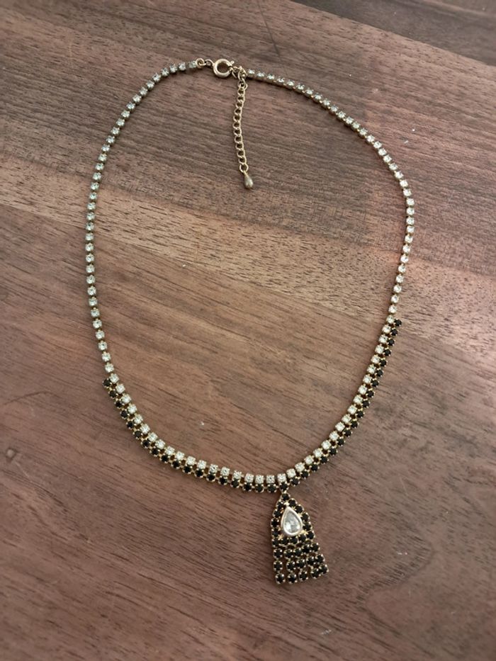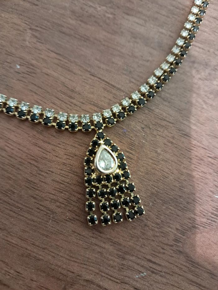 Métal strass blanc et noirs. Pompon de strass. Longueur réglable
