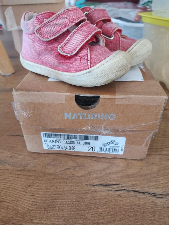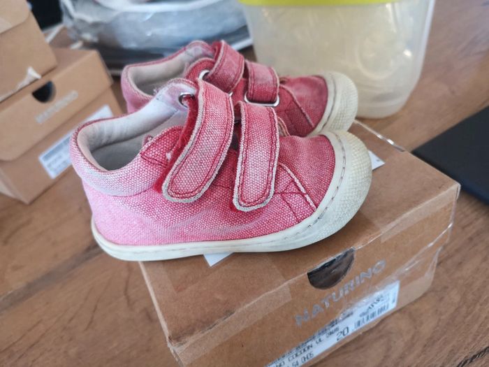 Pointure 20 naturino cocoon en toile Beaucoup portées ! La couleur est décolorée. Mais bon chaussures de très bonne qualité On en a D'autres ( en meilleur état) Rouge. Mixte Mondial relay de préférence