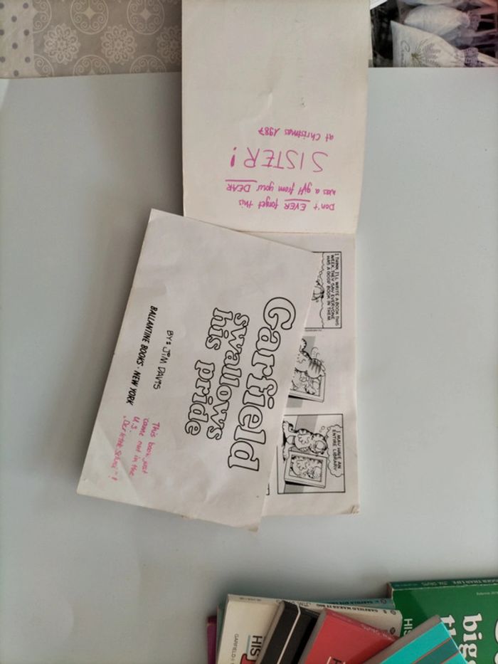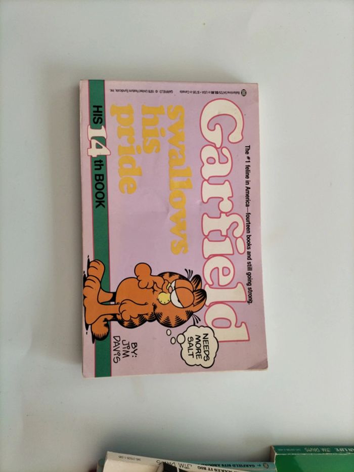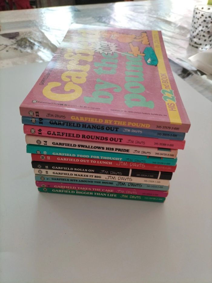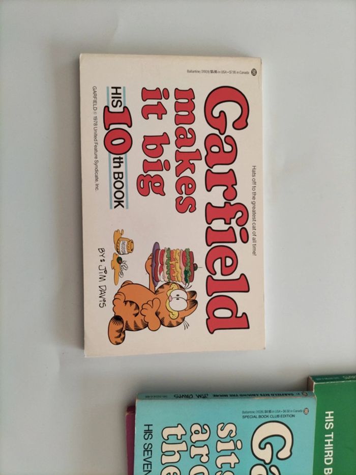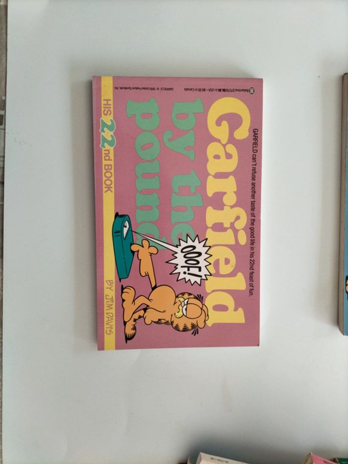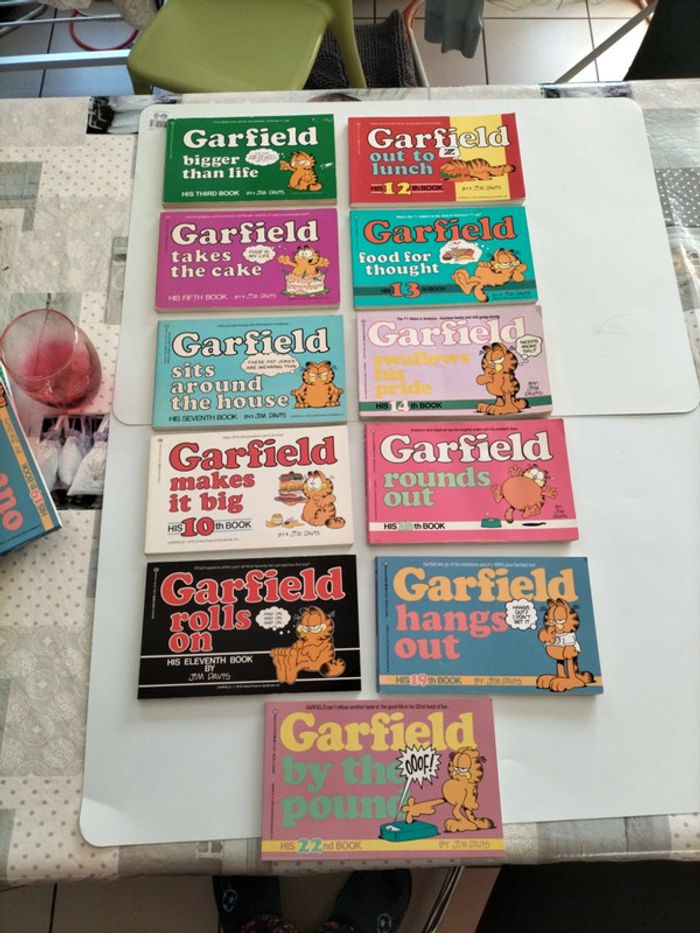 Bd Garfield en anglais Vintage N° 4 , 5,7,10,11,12,13,14,16,19,22 Certains en très bon état général vu l âges , d autre essentiellement le 14 ( tâches , messages , une page détachée ) le 4 (message ,tâche d usure ,couverture un peu plus importante), et le 16 (beaucoup de tâches ) Les autres sont en très bon état avec de légères traces d usure Plus de photos sur demande Possibilité de vente a l unité