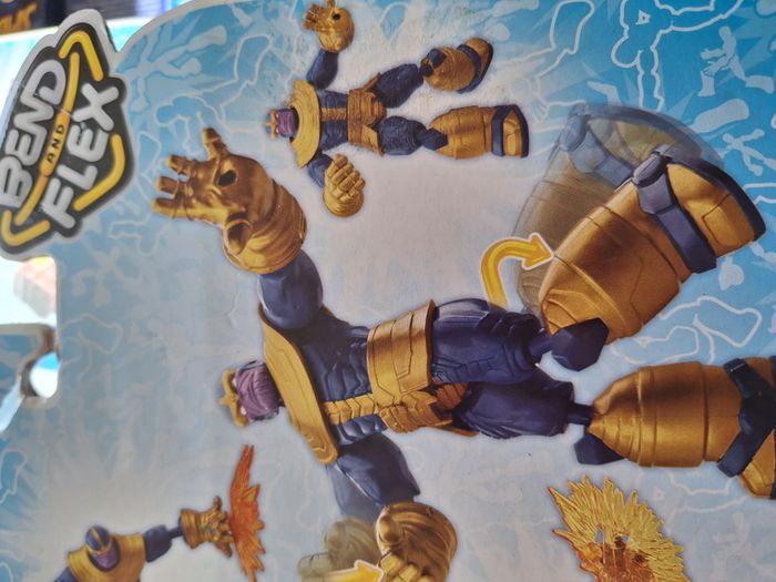 Thanos Figurine Avengers Marvel Bend and Flex Hasbro Plus de 4 ans Figurine de 15 cm que l'on peut tordre dans tous les sens pour créer des poses incroyables. Inclus, un accessoire pouvant servir de stand pour poser la figurine ou de projectile.