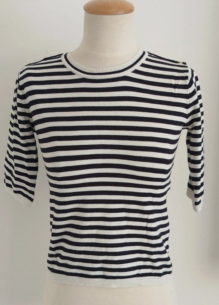Pull col rond marinière bleu marine et blanc Atmosphère taille 40 - photo numéro 1