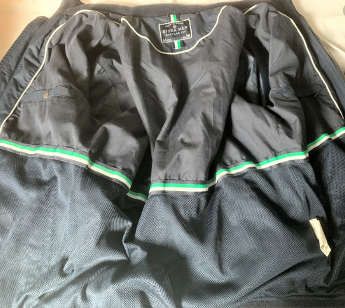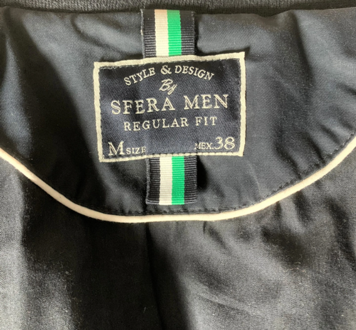 Marque "SFERA MEN", Comme neuf. Capuche dans col, 2 poches à pressions devant, 2 poches intérieur (1 zippée, 1 fermeture pression), 1 poche zippée sur un bras. Tour de poitrine 110 cm, longueur 66 cm. matière 60% coton, 40% polyamide, doublure 80% polyester, 20% coton.