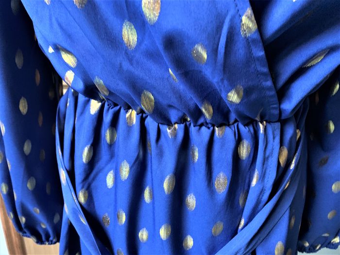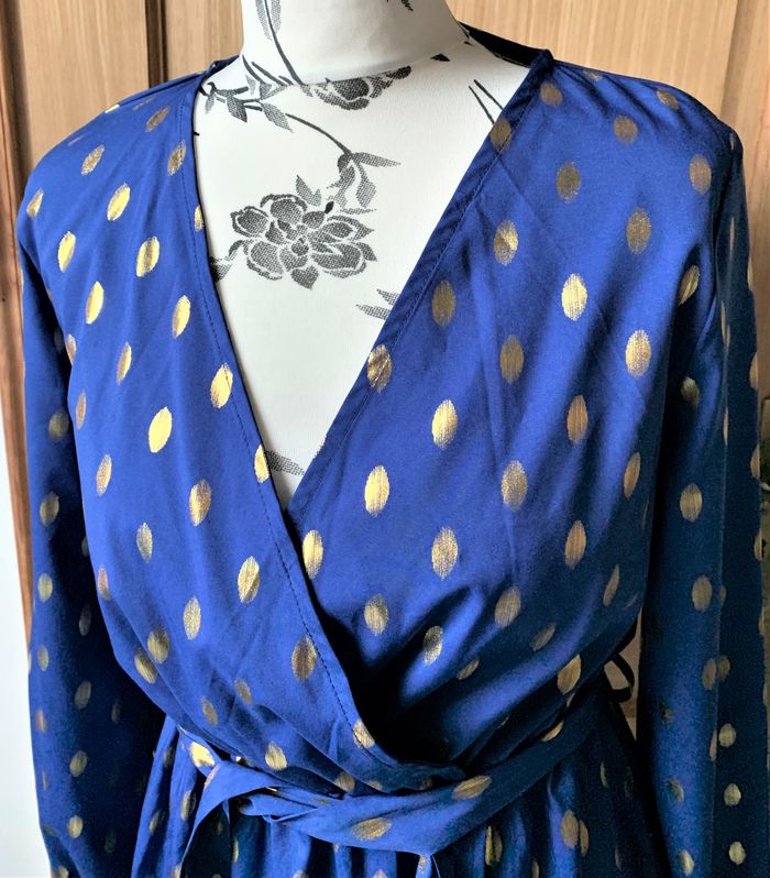 Robe bleue motifs dorés encolure cache coeur taille 36/38 - photo numéro 2