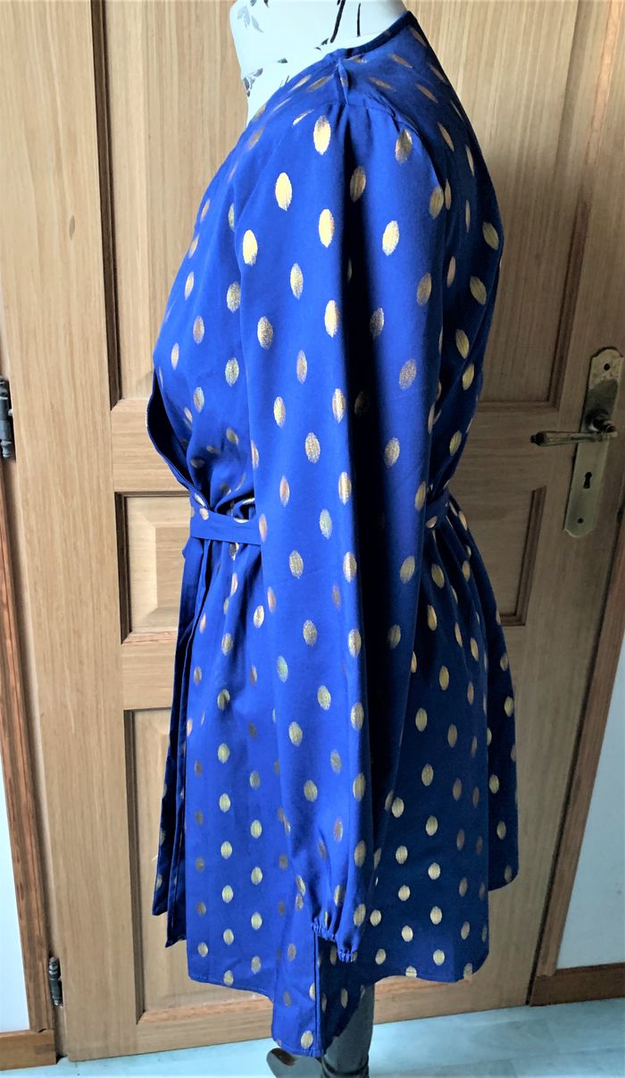 Robe bleue motifs dorés encolure cache coeur taille 36/38 - photo numéro 6
