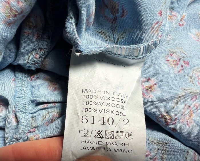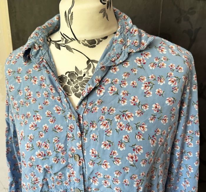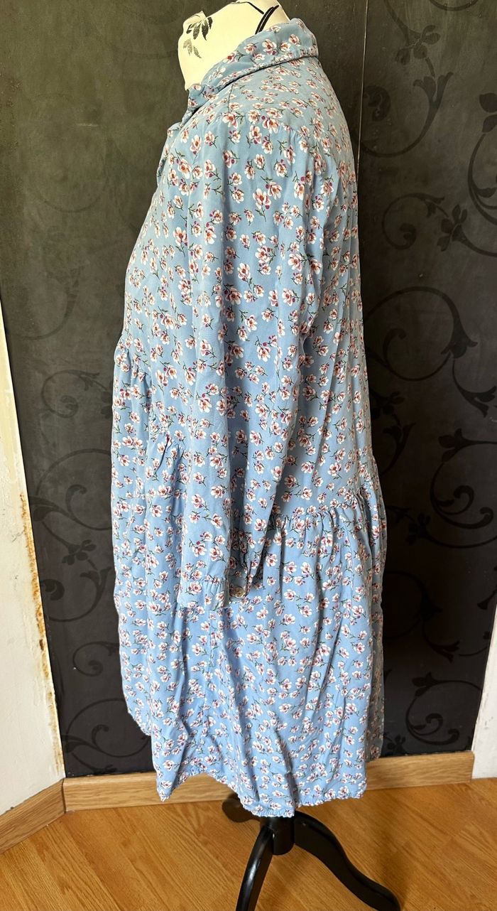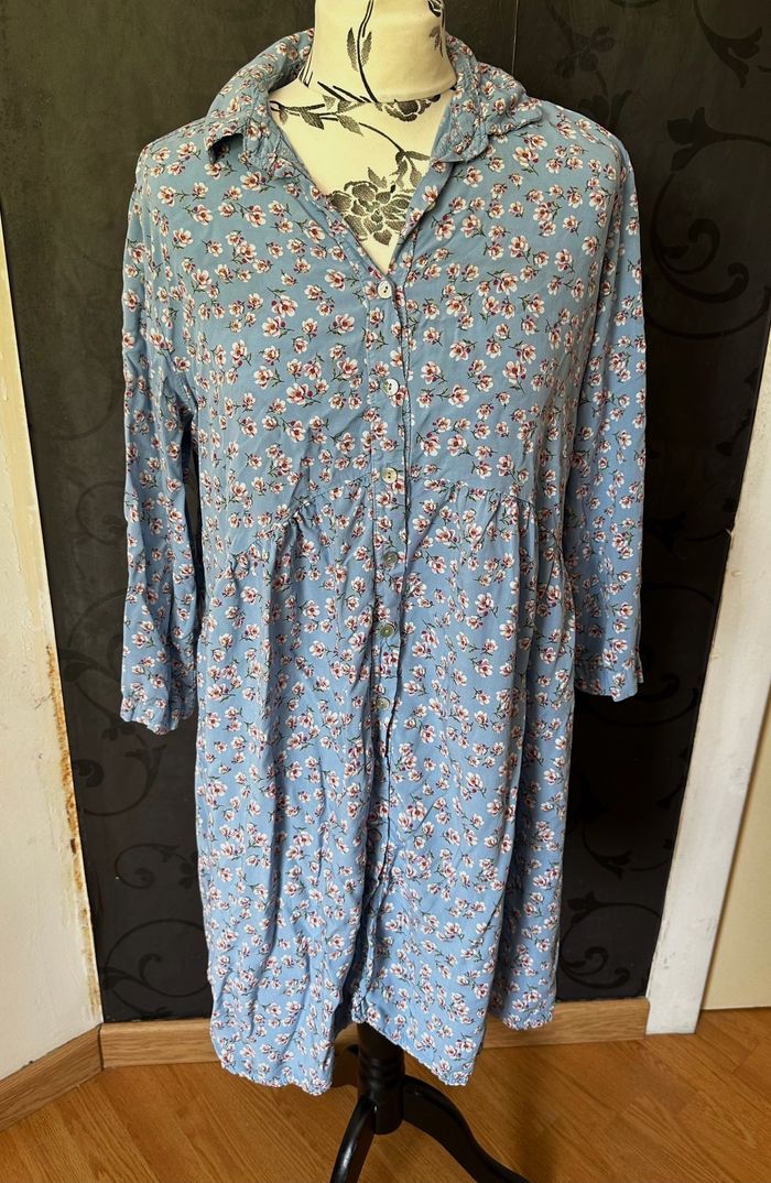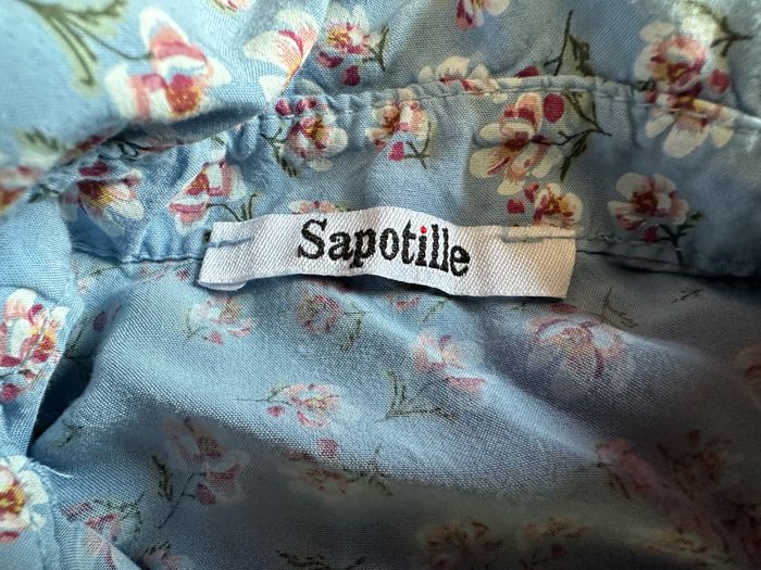 Marque "Sapotille", style babydoll, entièrement boutonnée devant. manches 3/4, Tour de poitrine 102 cm, largeur épaules 40 cm, longueur 92 cm. Matière 100% viscose.