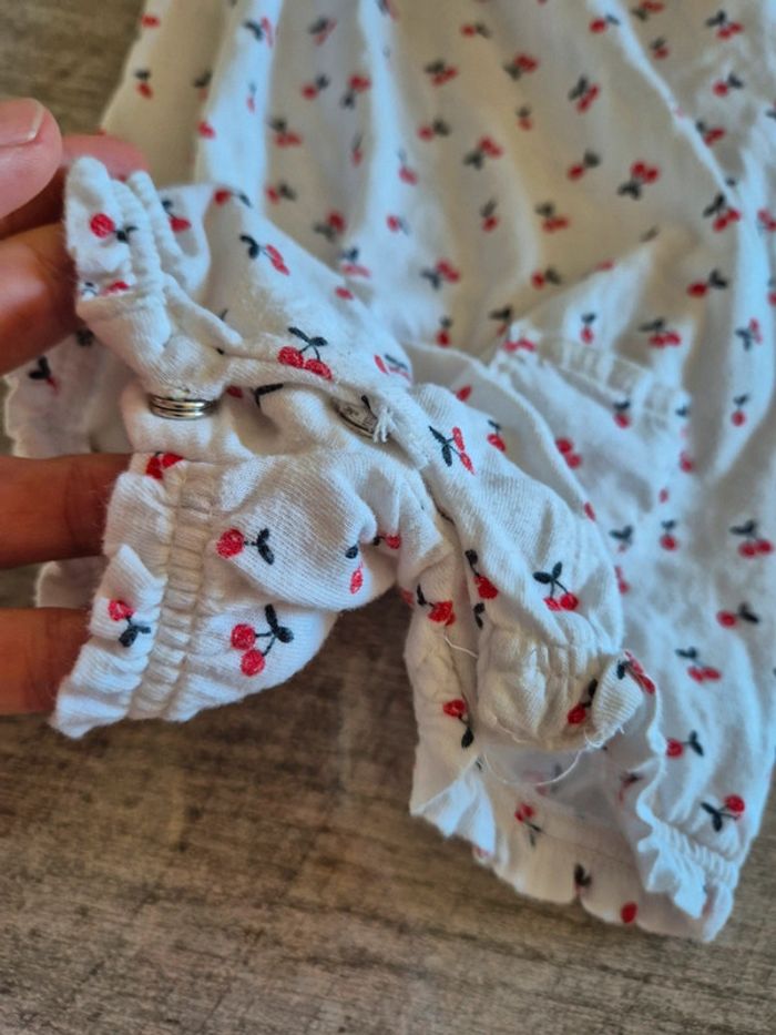 Bonjour, Pour plus de vĂŞtements de cette taille, cliquez sur le # en dessous #caillettes30_bebefille74cm Kiabi 12 mois Motif cerise Ouverture entre jambe