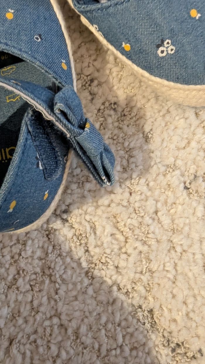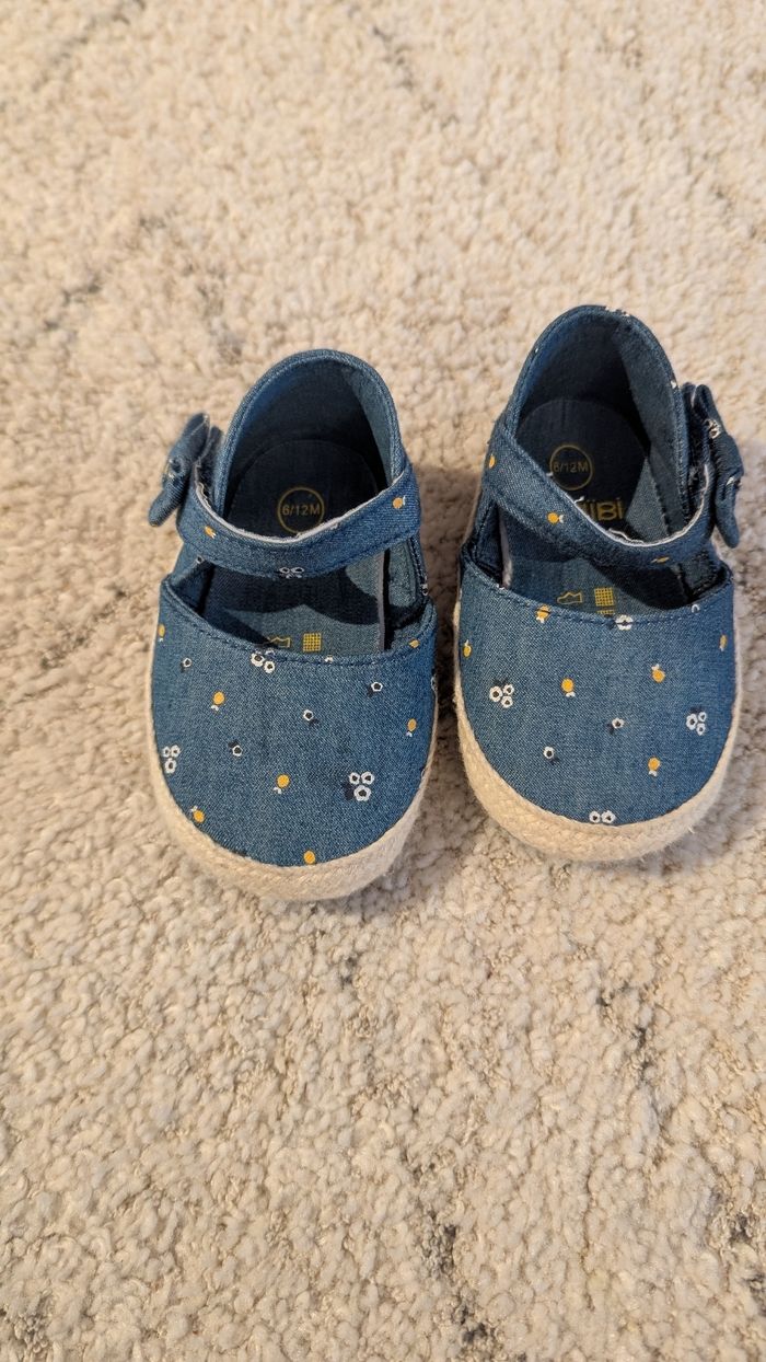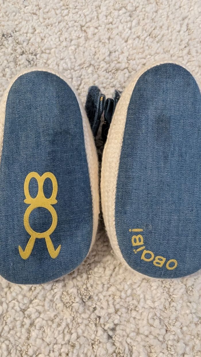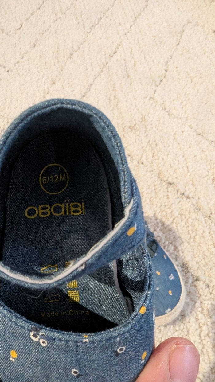 Chaussure à fleur bleue Obaïbi. Fermeture à scratch. Bou blanc