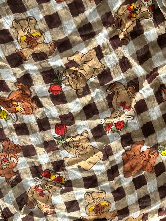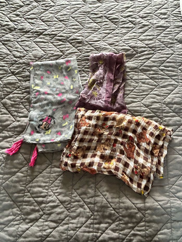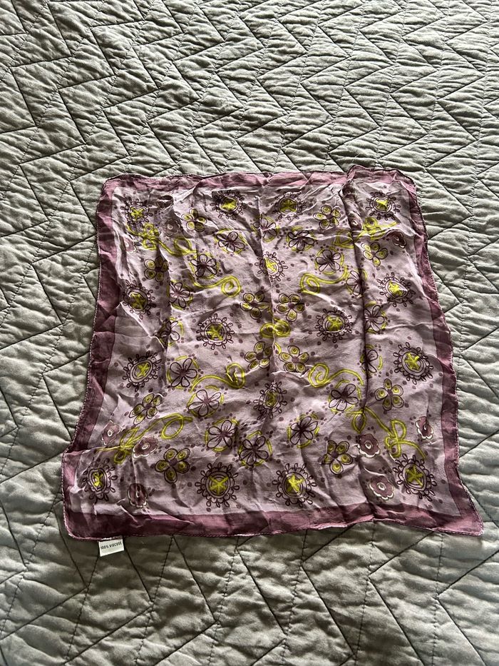 Lot de 3 foulards/ étoles enfant pour le printemps. -1 longue forme écharpe dans les couleurs de brun et beige avec motifs petits oursons. En viscose transparent. -1 grise avec motifs léopards et Minnie et quelques touches de bleu claire, jaune et fuchsia. Forme carrée avec pompons fuchsia à chaque coin. Mélange coton et viscose. -1 couleur parme et violet avec motifs florales et quelques touches de vert annis. Forme carrée plus petite. En viscose transparent. Très mignonne pouf le printemps. En très bon état.