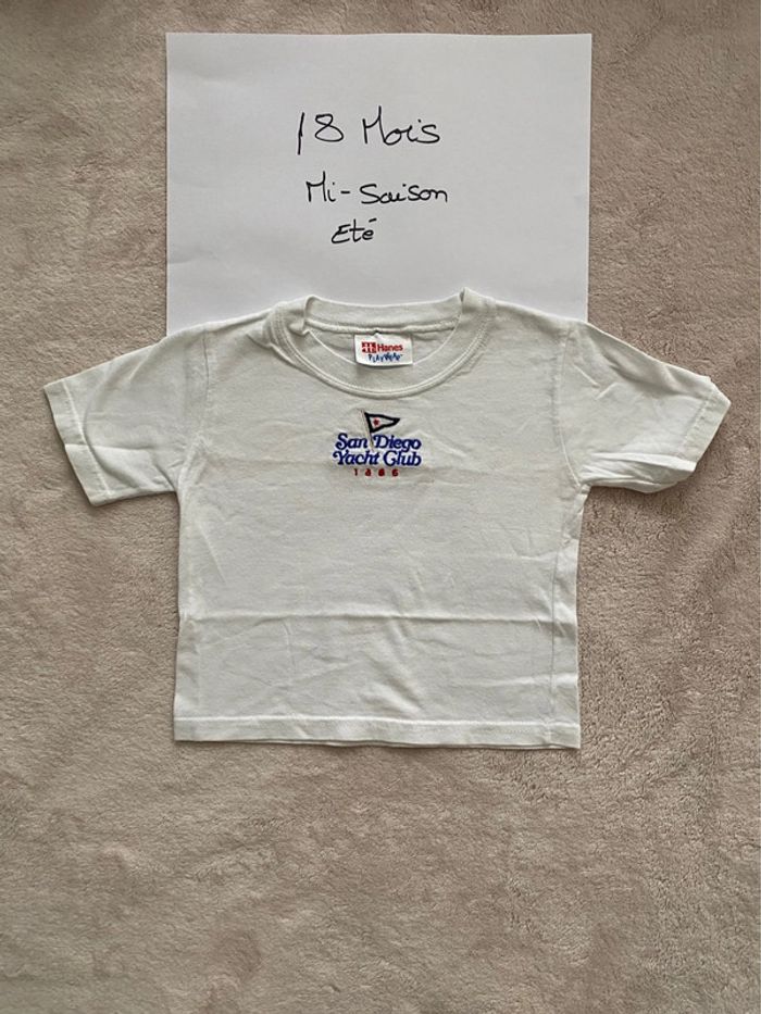 💫#dirly_vêtements_18mois💫 🏷️ 1 T-shirt Neuf avec étiquette ||Taille : 18 mois / 80 cm || Marque : Okaïdi || Motif : basket ball 🏷️ 4 T-shirts manches courtes 👕 🫧 TBE (Très Bon État) : pas de trou,pas de tâche || Taille : 18 mois / 81 cm || Marque : Du Parei Au Même (DPAM), Hanes, Vertbaudet & autre || Motifs : Uni, écriture «  San Diego yacht club », « nature » N’hésitez pas à aller voir mon dressing 📚 🩴👟🎲 👕👖pour profiter de prix intéressants. 〰️Maison non fumeur 🚭 〰️Pas d’animaux 👉 les # (voir au début de l’annonce) vous permettent d'accéder directement aux tailles ou categories recherchées (retirez les filtres de taille tout en haut de la recherche) 😊 👉Réduction ↘️ si plusieurs achats 🛍️🛍️ 👉Abonnez-vous à mon profil, d’autres articles sont en cours de publication 😊 👉Envoi très rapide 🏎️ 🚛 📦 #été #printemps #vacances #plage #mer #détente #chaleur #cadeau #piscine #océan #teeshirt #tee-shirt