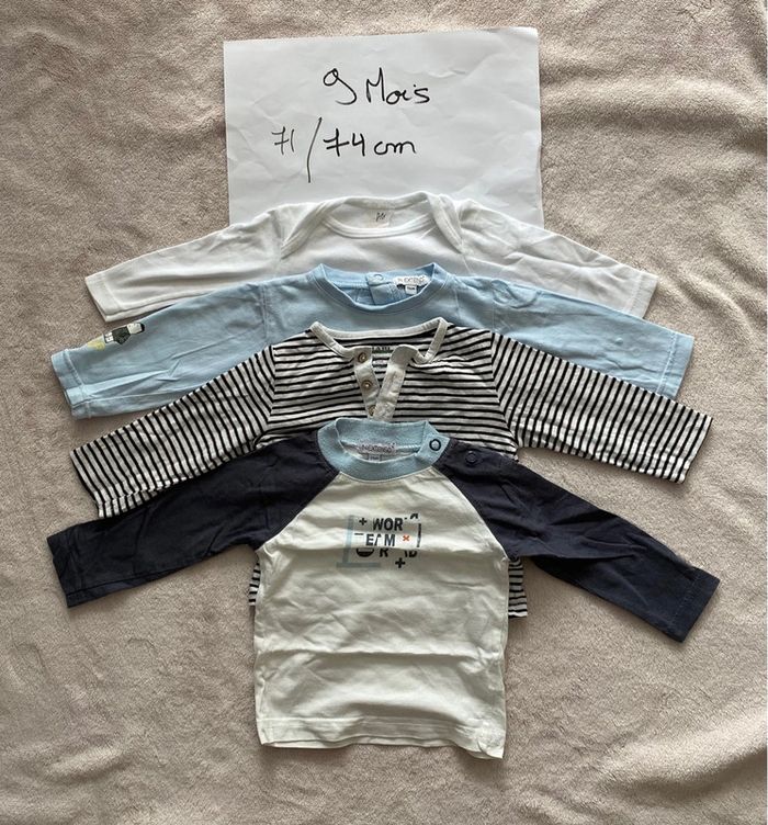 Lot 4 T-shirts manches longues - Kiabi, In extenso - 9 mois - TBE - photo numéro 12