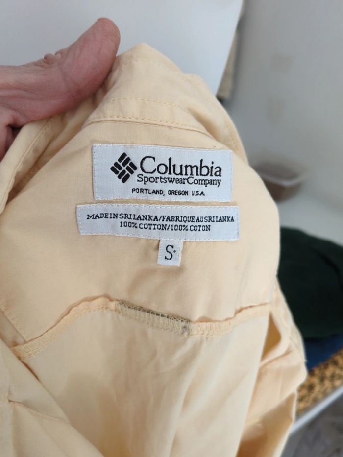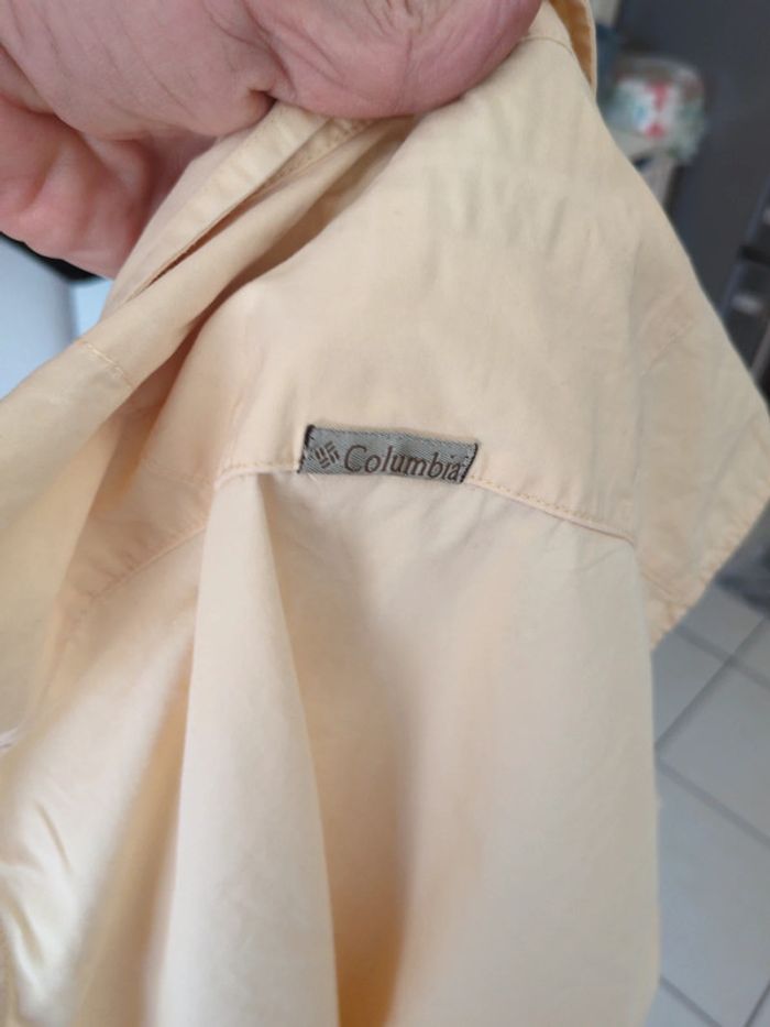 Chemise femme jaune poussin, pour l'été sportif ou la rando. Logo derrière. Mesures 36/49/68 #chemisecolumbiafemme #columbiasportwear #parfoisoui36