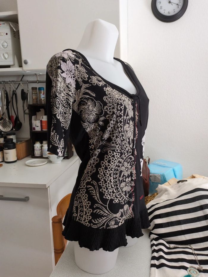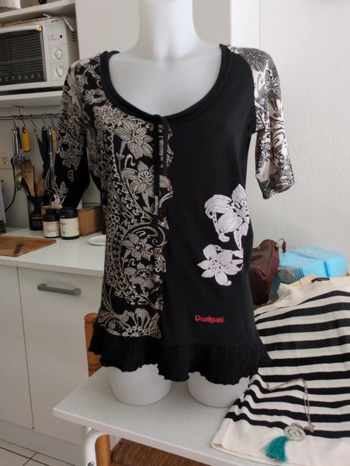 Top manches courtes noir et blanc Desigual L - photo numéro 1
