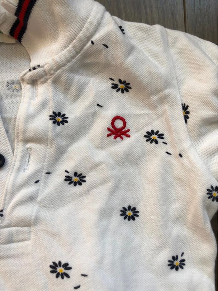 Très bon état. Jeans léger et polo avec motif fleurs. #nuria_2924_12mois #ensemblebenetton #conjuntobenetton #benettonbebe
