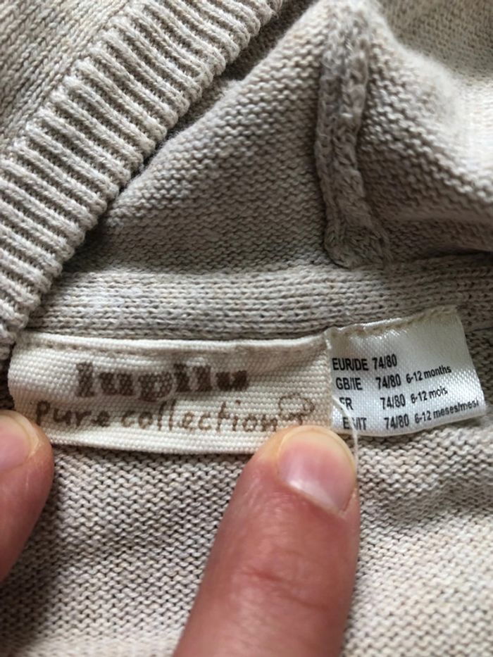 Beige tricot, Lupilu, taille 6-12 mois (74 cm). En très bon état. Peu porté. Gris en coton, motif en relief. Marque Unit. En très bon état. #nuria_2924_12mois #sweatcapuchebébé12mois #capuchabebe