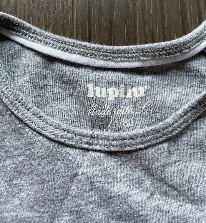 T-shirt gris Lupilu. En excellent état. Couleur gris. Taille 12 mois (74-80 cm). #nuria_2924_12mois