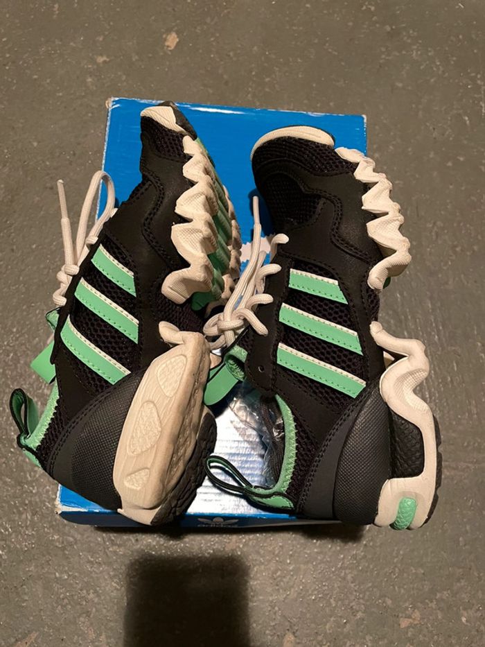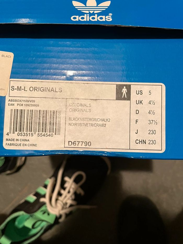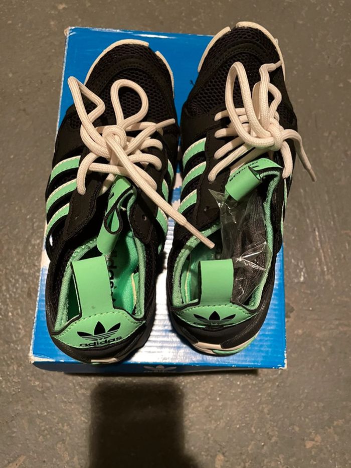 Baskets Adidas, souples, bon état. Vendues avec des lacets supplémentaires et dans la boîte d'origine. Couleurs : noir, blanc, vert. #adidas #adidasiriginals #nuria_2924_chaussures37