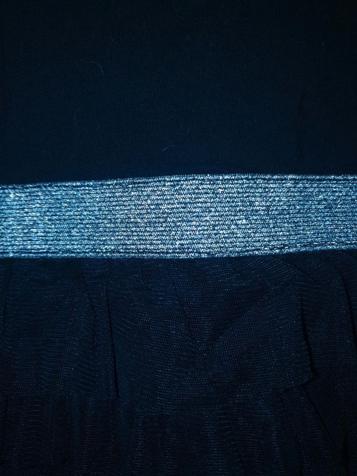 Robe bleu marine manche longue bas volante en tulle bande argente a la taille