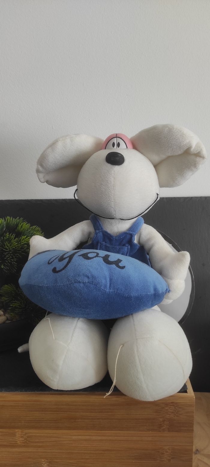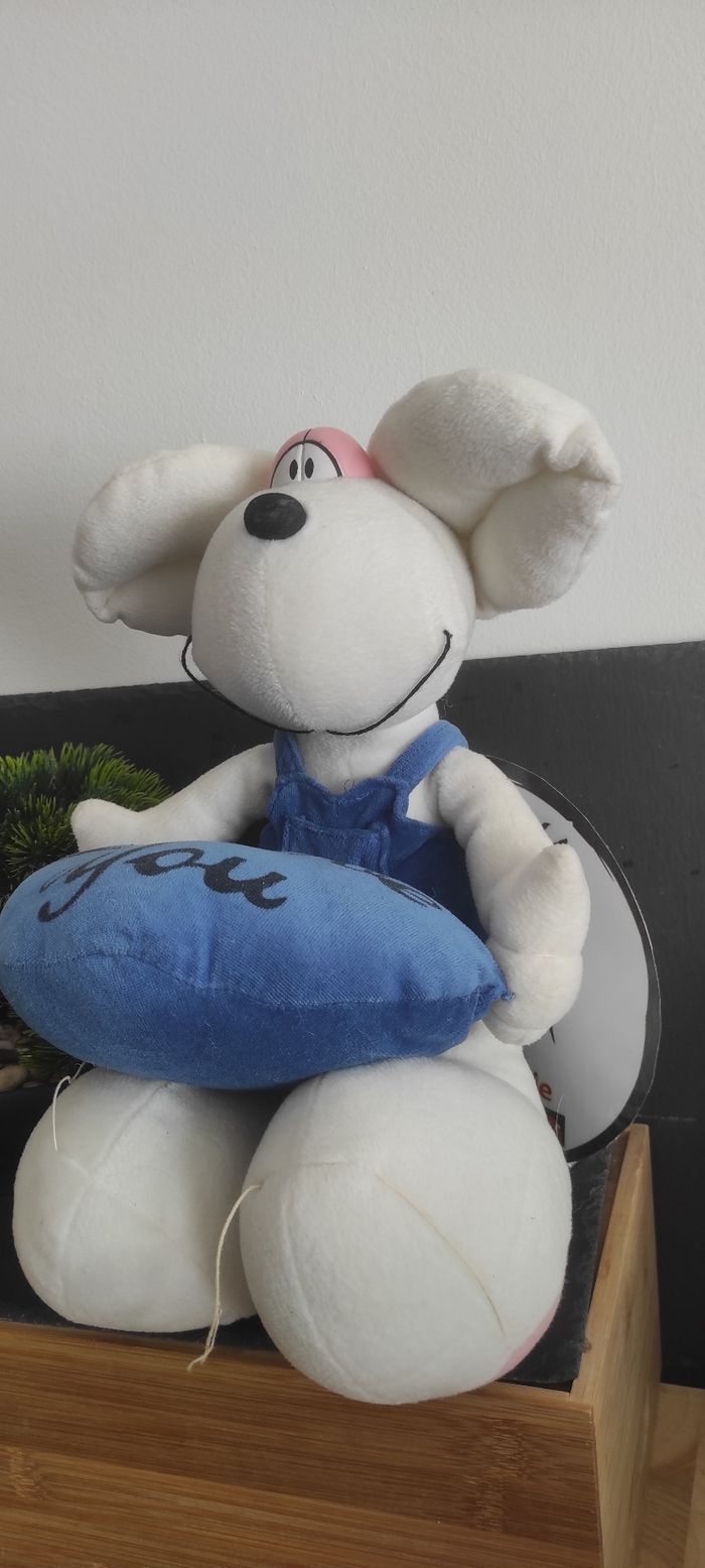 grosse peluche diddl ancien vintage coeur i love you bleu blanc souris