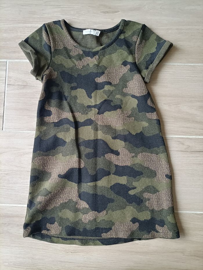 Robe pour fille Orchestra Taille 8 ans manches courtes Motif camouflage militaire avec fil doré Tissu un peu épais idéal pour la mi saison Très bon état général Envoi possible