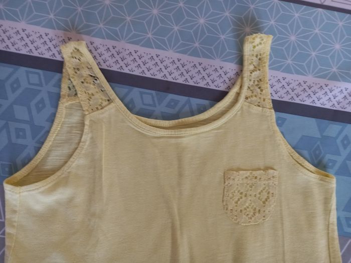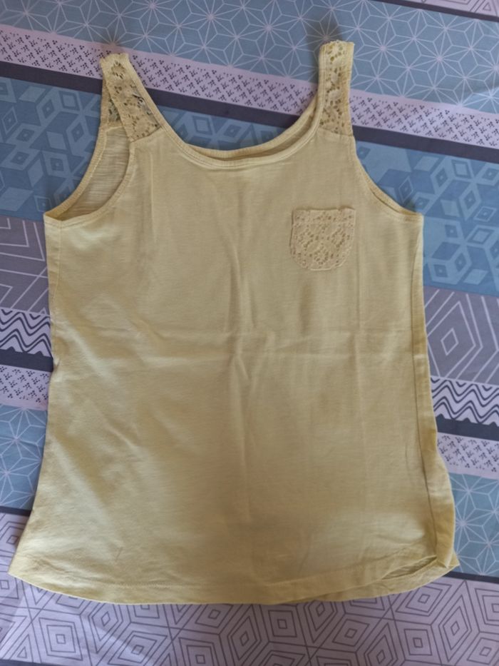 Débardeur jaune avec détail dentelles sur le haut Tbe Kiabi 10 ans
