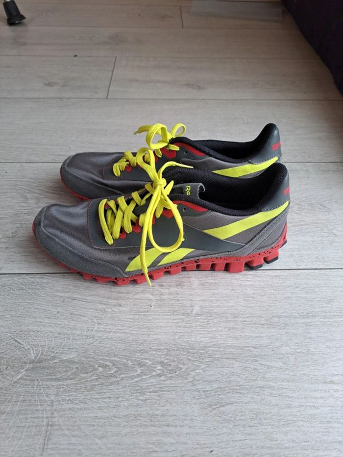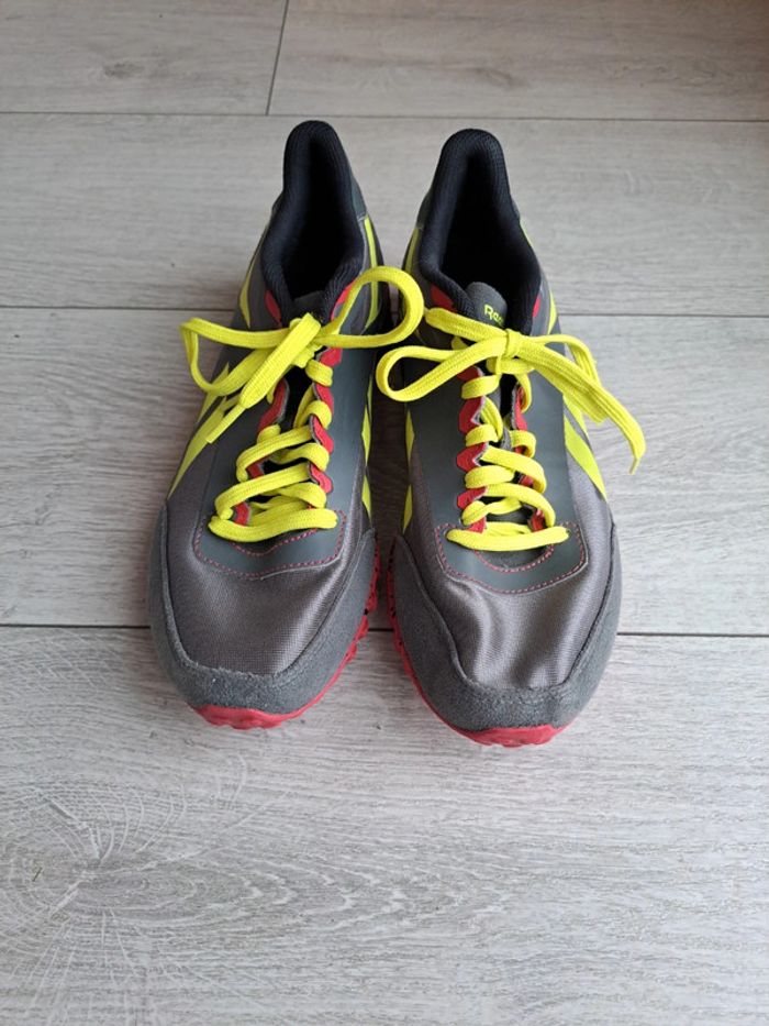 REEBOK REALFLEX FLEX RACER CHAUSSURES DE COURSE GRIS/ROUGE/JAUNE Semelle RealFlex: les capteurs individuels offrent une flexibilité multidirectionnelle et une sensation de pied optimale tout au long du processus de placement et de déroulement. Les chaussures de course sont rembourrées pour un ajustement confortable sur le col. La semelle extérieure offre un soutien léger et favorise le déroulement naturel du pied. La semelle intérieure amovible a également un effet légèrement amortissant. Exécution de haute qualité et qualité dans un design distinctif. Pointure 37.5 et non 38 Neuves jamais portées. Prix d'achat 109€ #vayssadechaussures