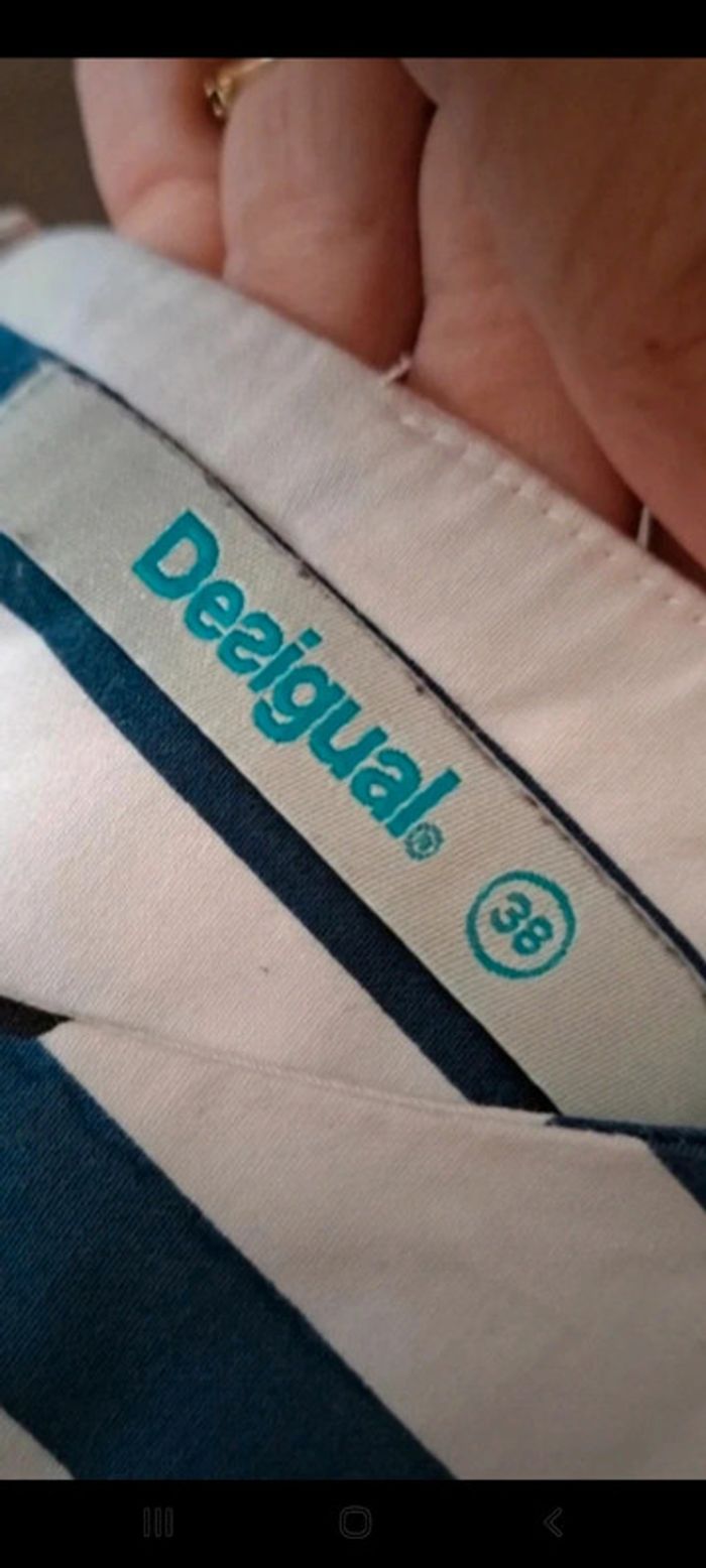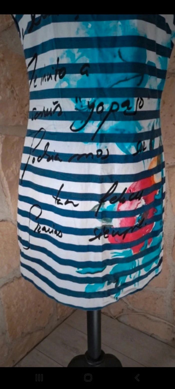Très belle robe Desigual taille 38 Excellent état. Portée 1 ou 2 fois. Robe avec rayures style marin. Écritures et Motif fleur Idéale printemps été #vayssadefemme38
