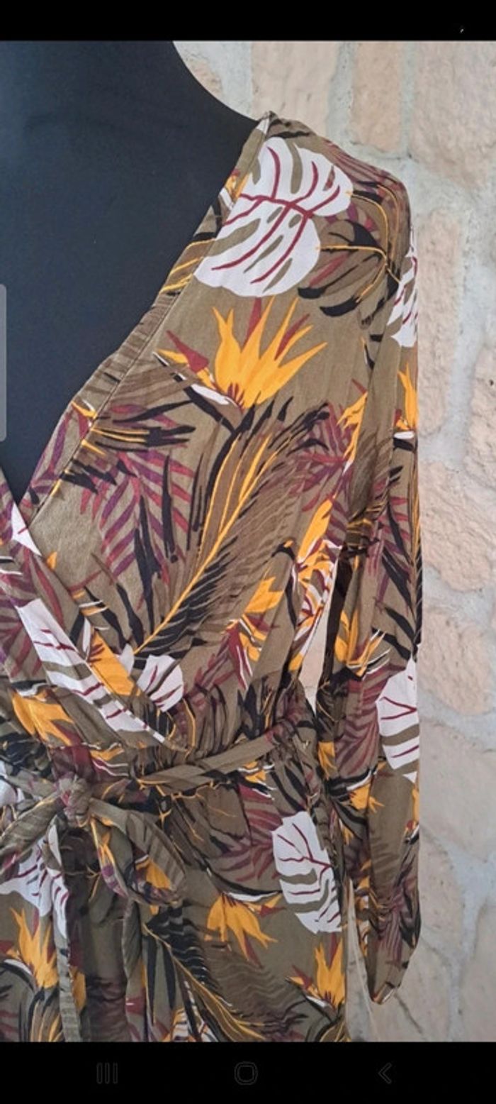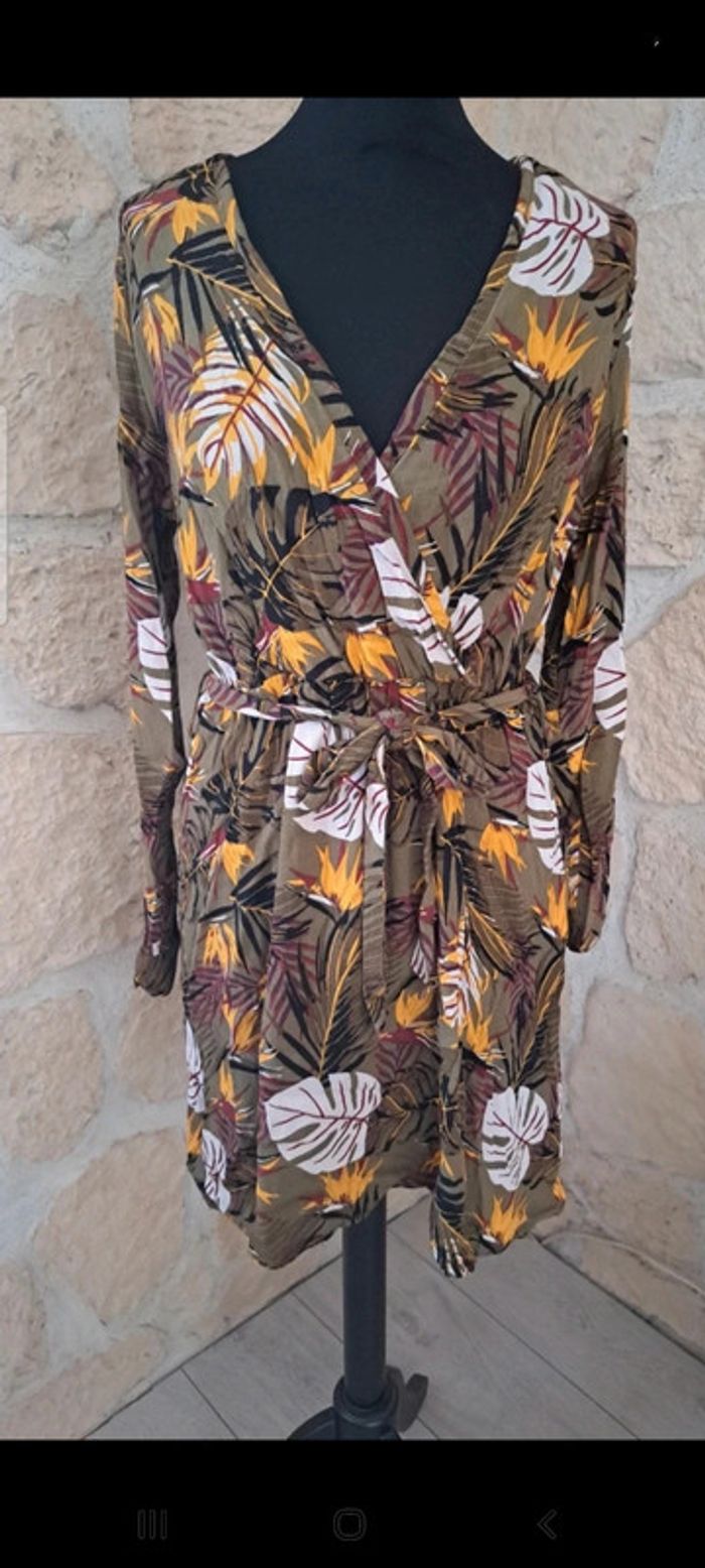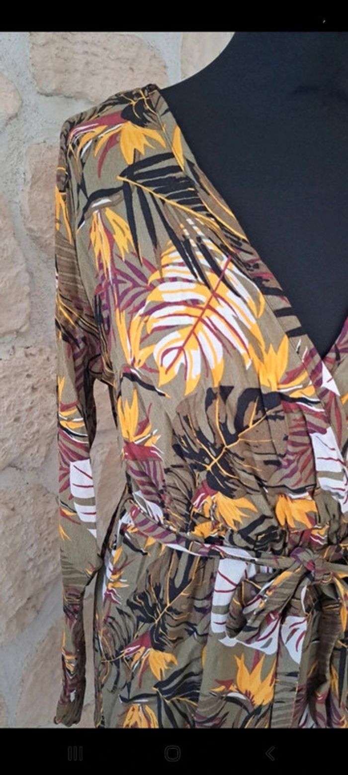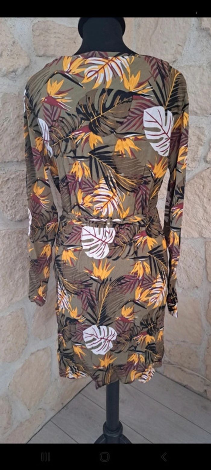 Robe femme Monoprix taille 38 Neuve jamais portée Motif feuille tropicale Manches longues Bouton de rechange #vayssadefemme38