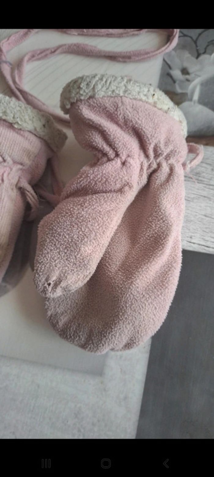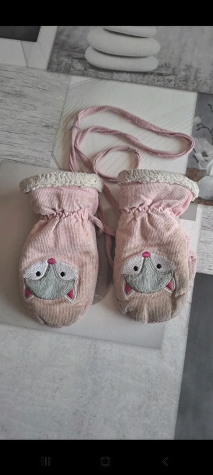Moufles fille isotoner 2/4 ans Bouts marron et un petit trou sur un pouce (photos) Moufles attachées par un cordon #vayssadeaccessoires #vayssadefille4ans #vayssade3ans #vayssade2ans