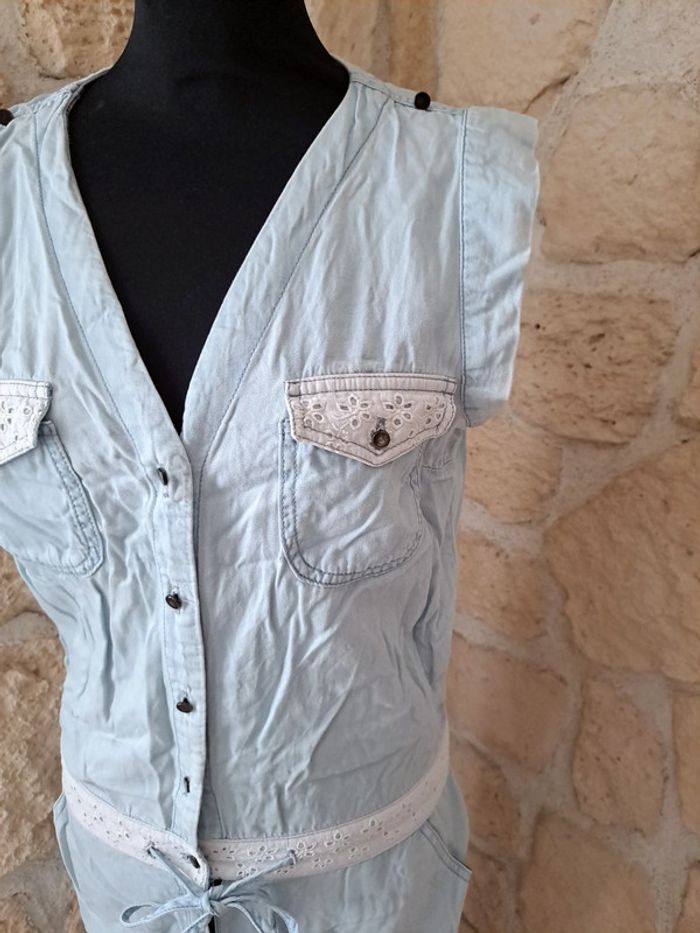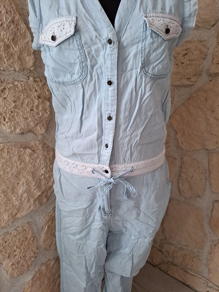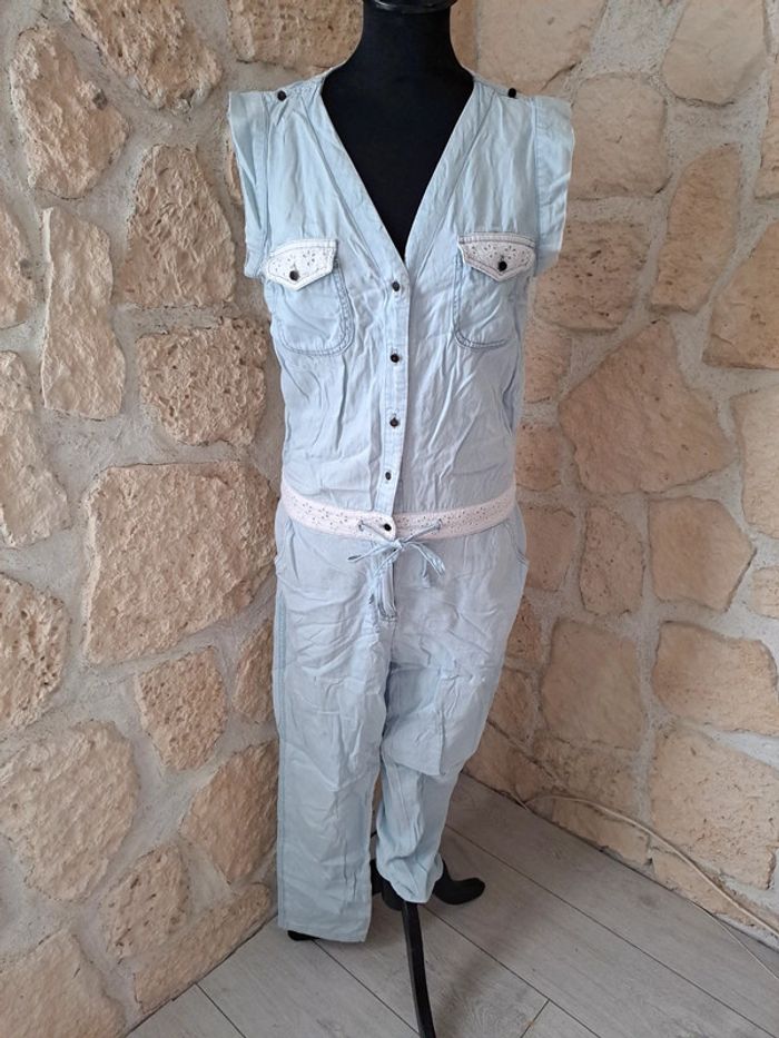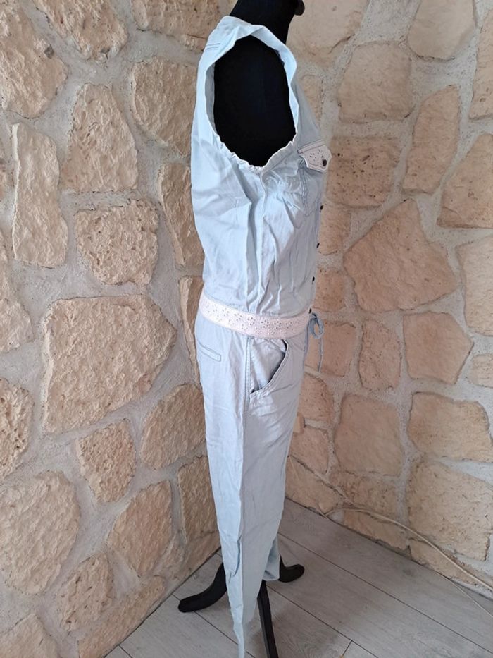 Combinaison pantalon Naf Naf taille 38 Très bon état Combinaison légère Broderie aux poches et à la taille Bleu très clair #vayssadefemme38