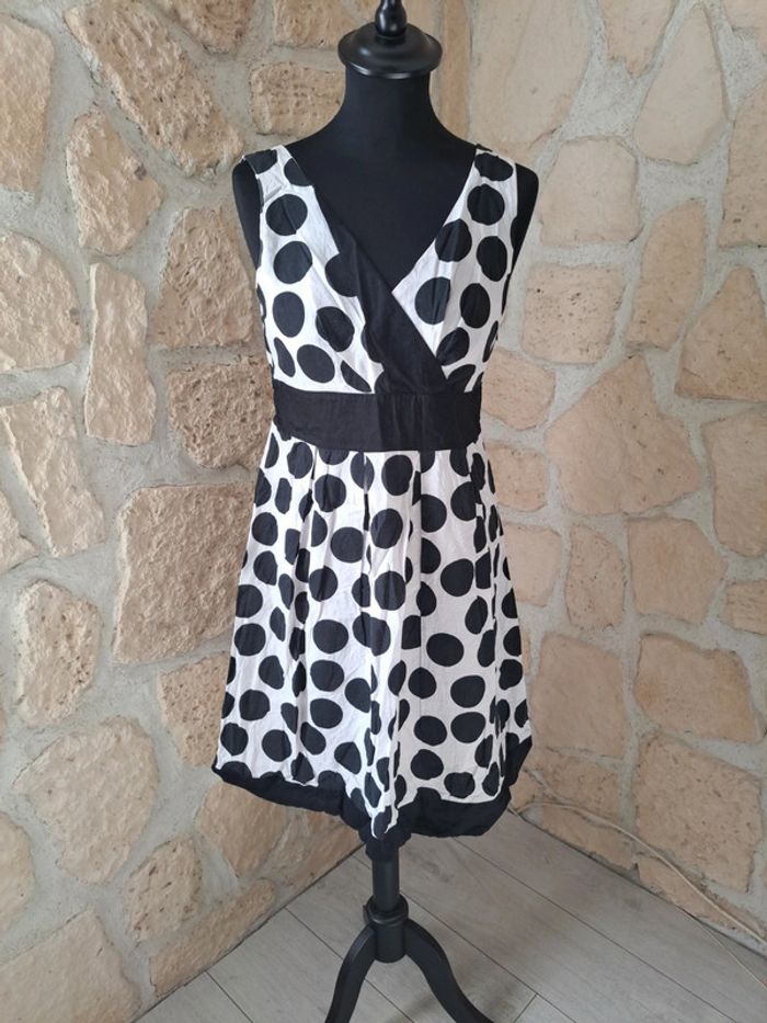 Robe femme Promod taille 40 Très bon état Motif gros pois noirs Ceinture à la taille. Esprit rockabily #vayssadefemme40