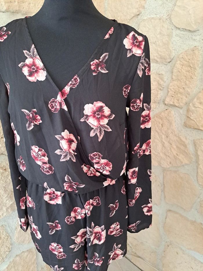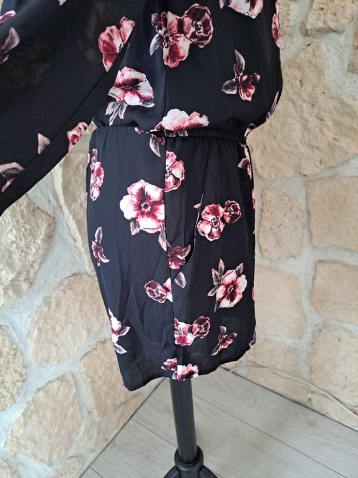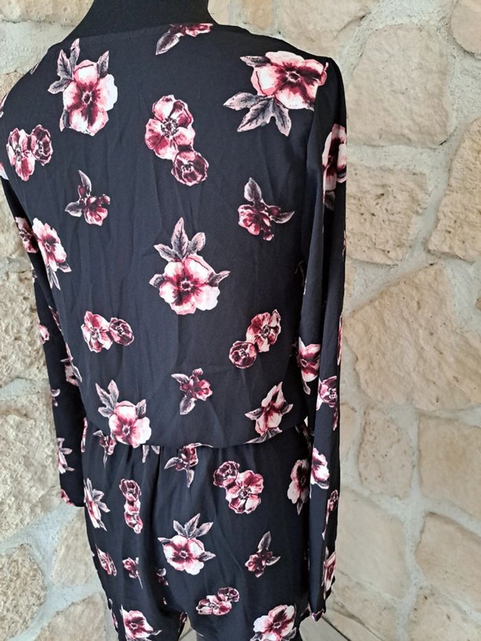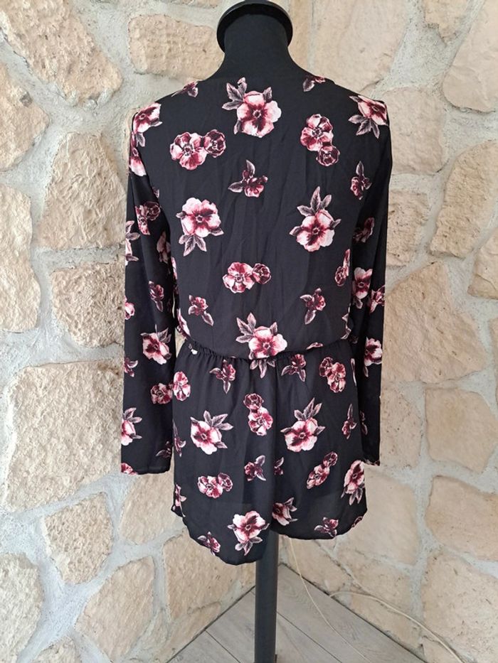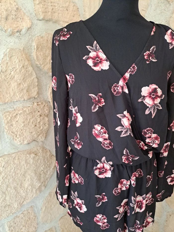 Combishort h&m fleurie femme taille 2 Combishort manches longues Portée 1 fois Très bon état. A noter un trou au niveau de l'arrière du cou (étiquette coupée) Motif fleurs Manches longues #vayssadefemme36 #vayssadefemme38