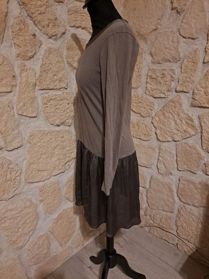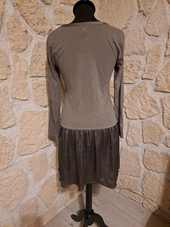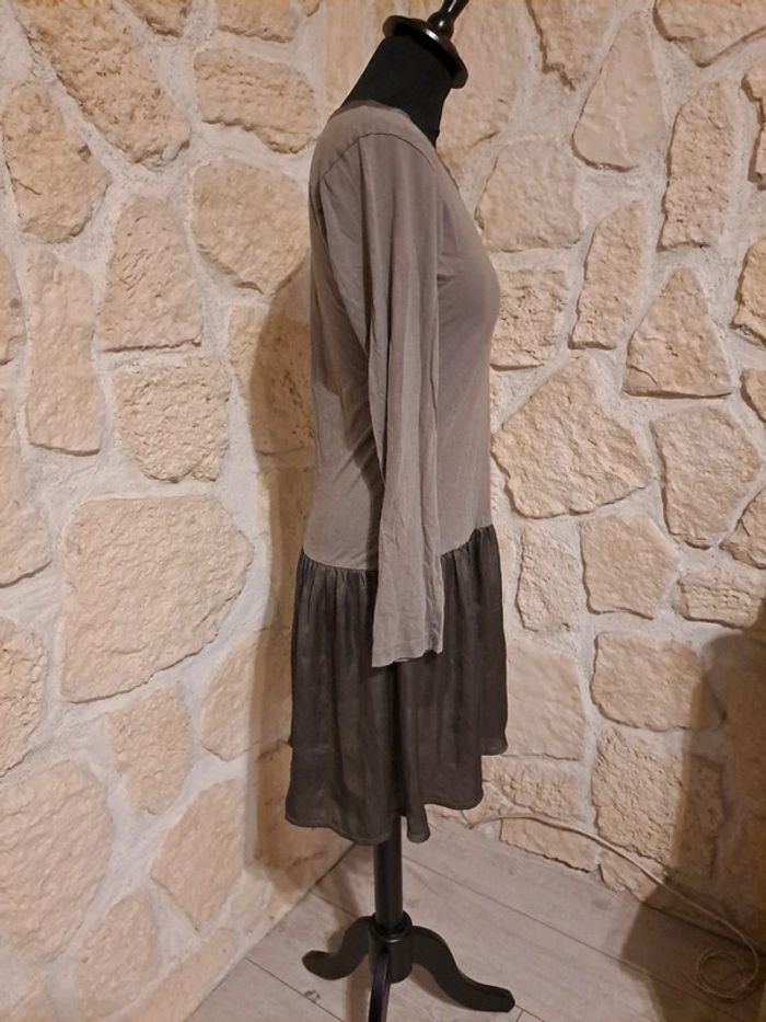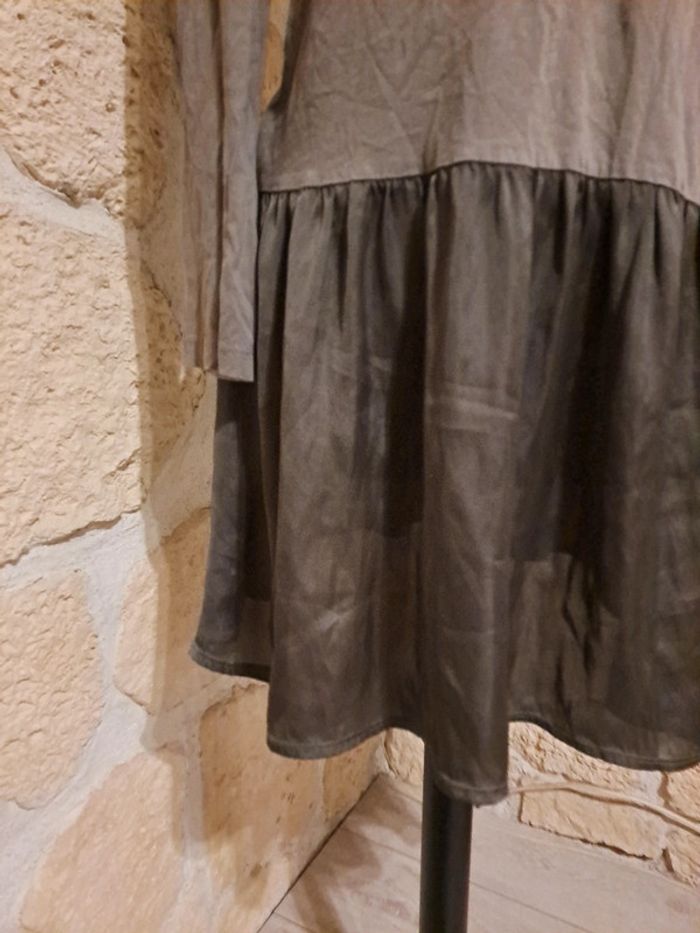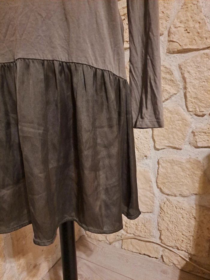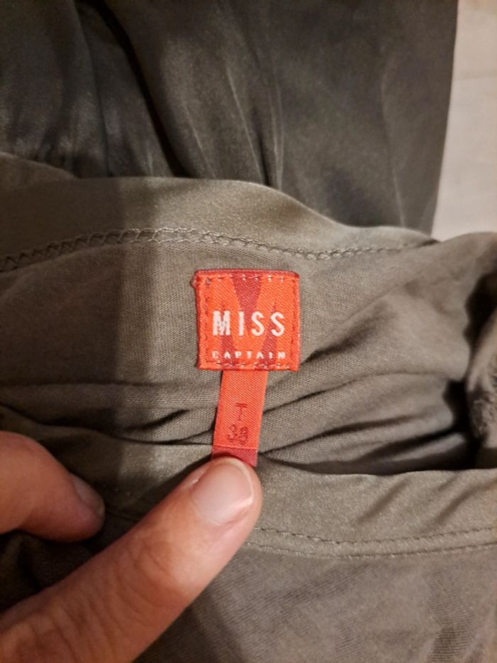 Robe Miss Capitain taille 38 Robe bi-matière. Matière fluide type soie sur le bas et au col. Excellent état Couleur kaki Collection automne hiver #vayssadefemme38