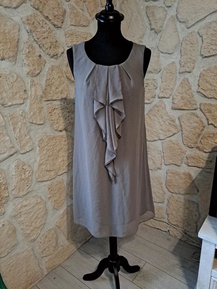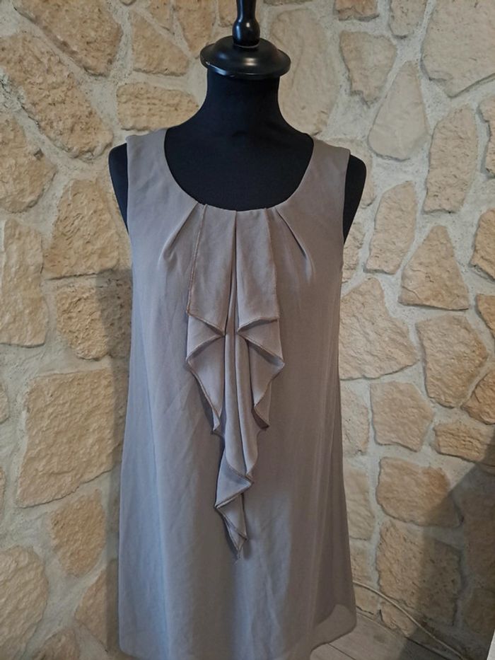 Robe chic Camaïeu taille 36. Voile et doublure. Idéale fête ou cérémonie. Neuve jamais portée. Couleur marron clair taupe. #vayssadefemme36