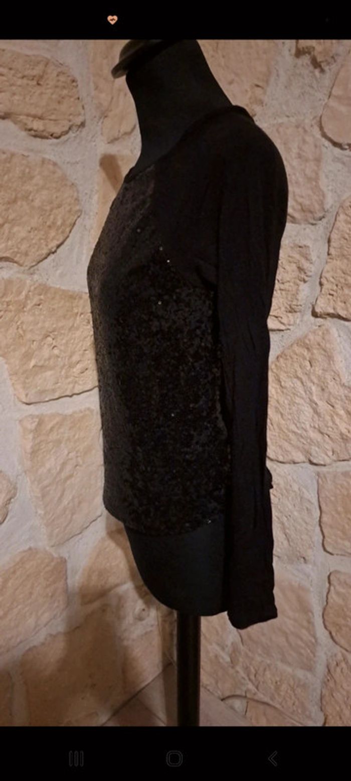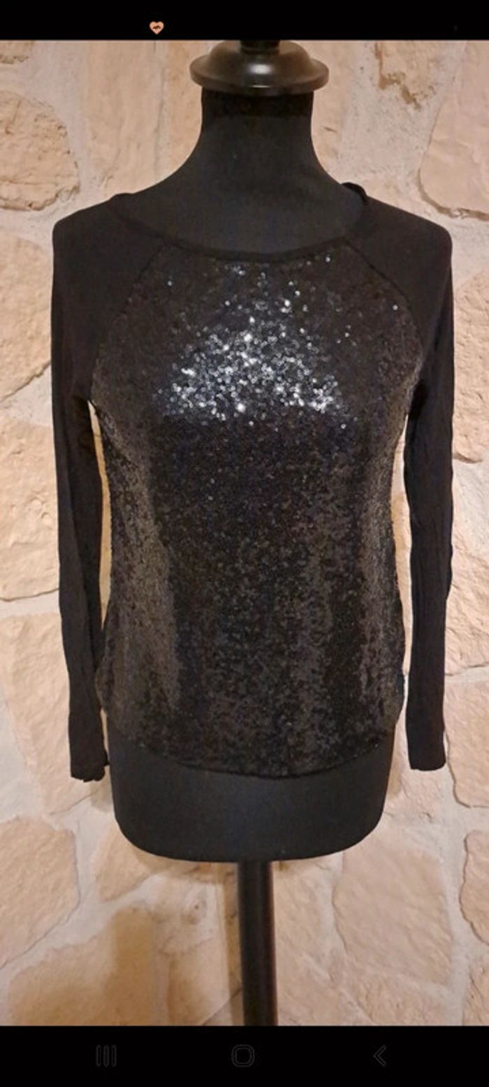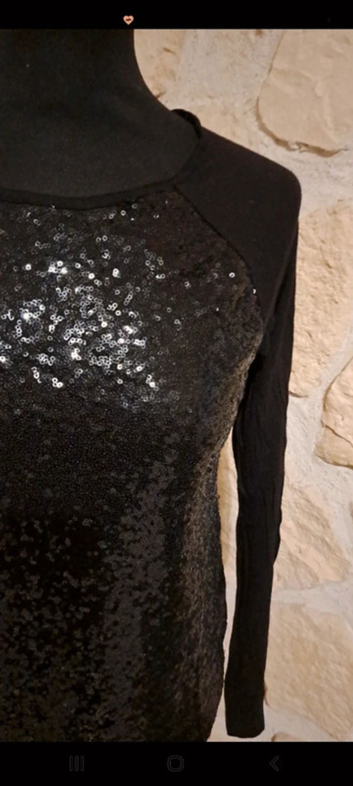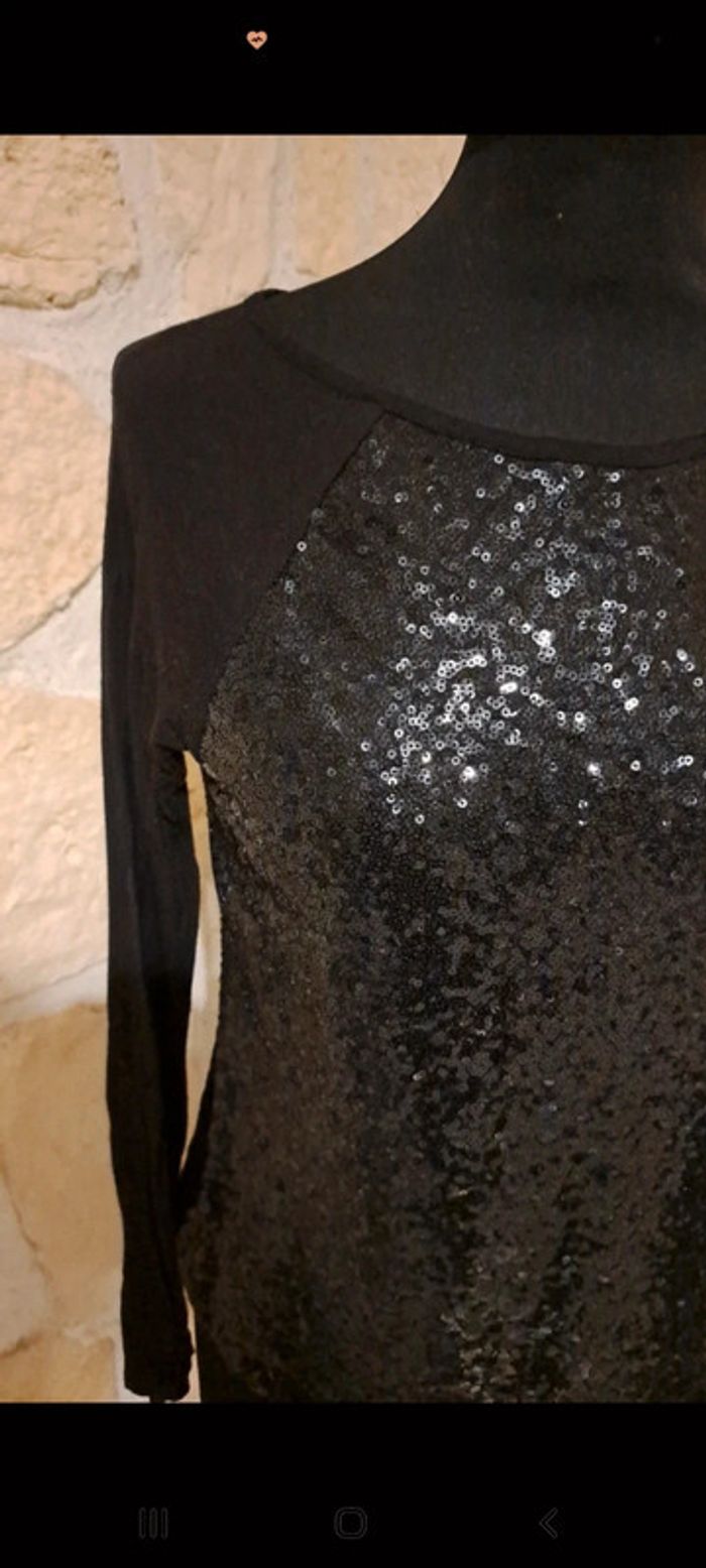 Tee-shirt habillé sequins femme taille 34 h&m Très bon état. A noter une petite tâche à une manche (photo) Idéal pour les fêtes . Noël réveillon. #vayssadefemme34