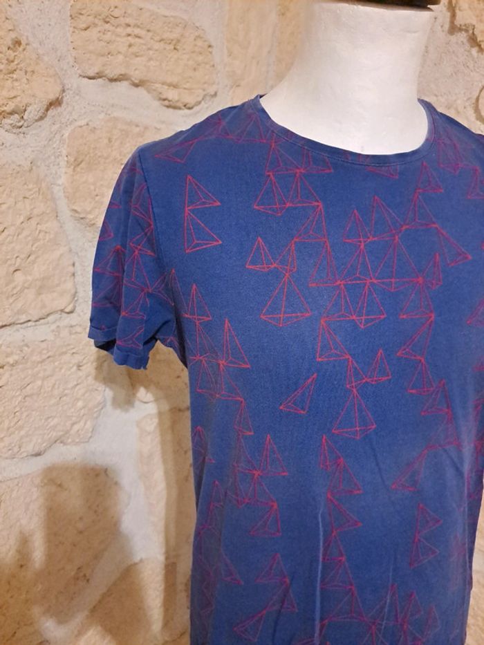 Tee-shirt homme Devred taille M Très bon état Motifs géométriques pyramides Étiquette composition coupée #vayssadehomme