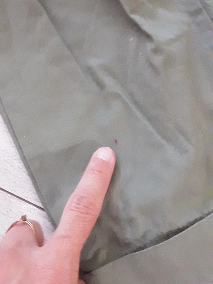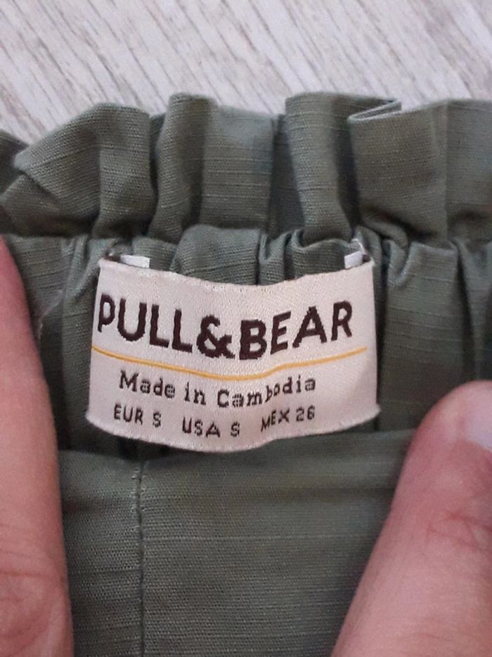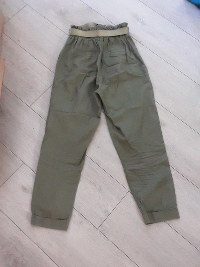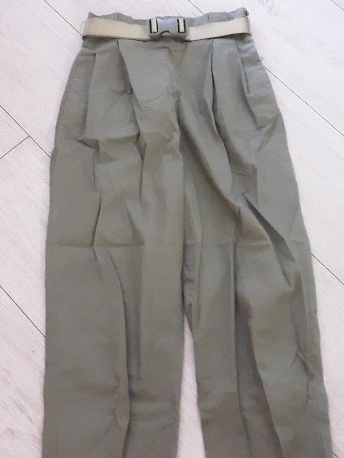 Pantalon léger kaki femme Pull and bear taille S Juste mini tâches rouge en bas du pantalon (photos) Sinon très bon état. Ceinture vendue avec le pantalon. Idéal printemps été #vayssadefemme36
