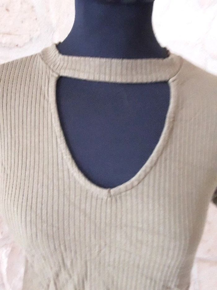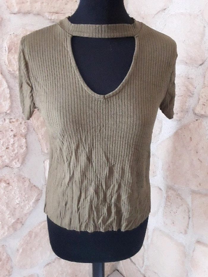 Top côtelé kaki Jennyfer taille S Très bon état Décolleté Étiquette intérieure coupée #vayssadefemme36
