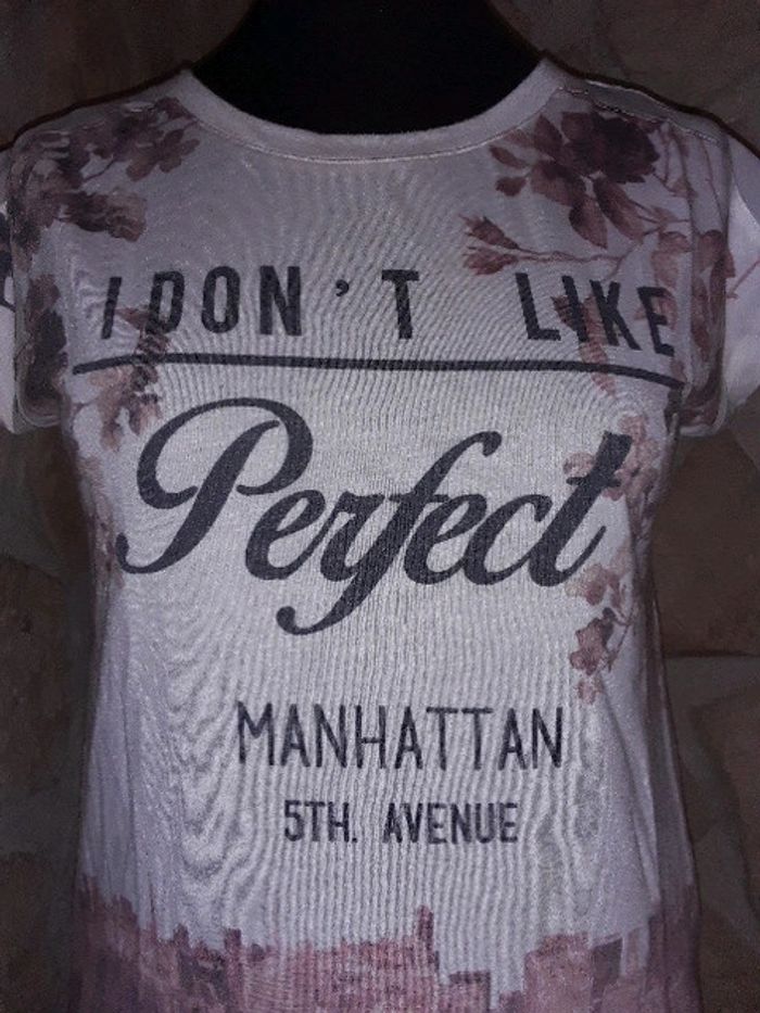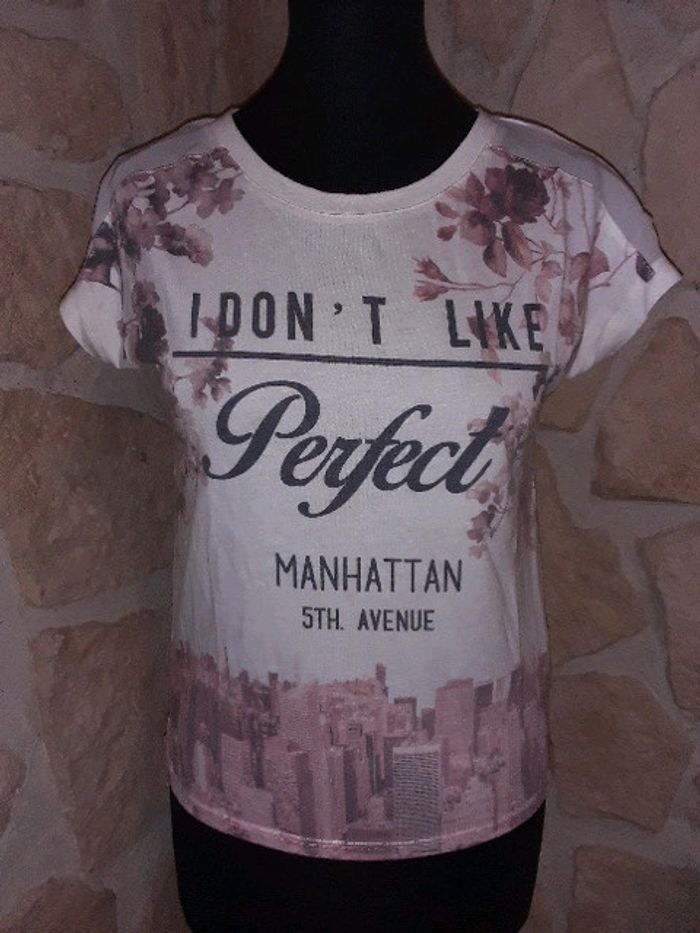 Tee-shirt femme ado taille XS Jennifer Très bon état Message I don't like Perfect #vayssadefemme34