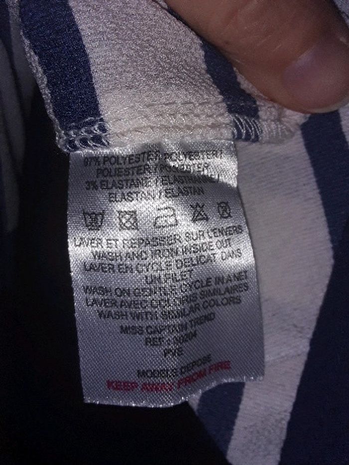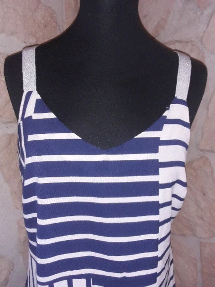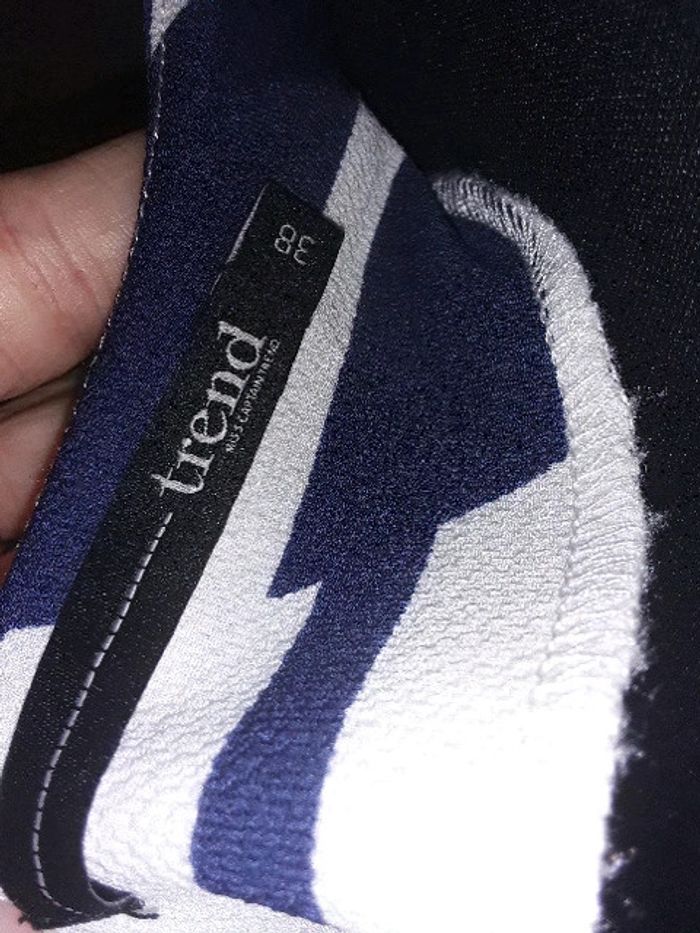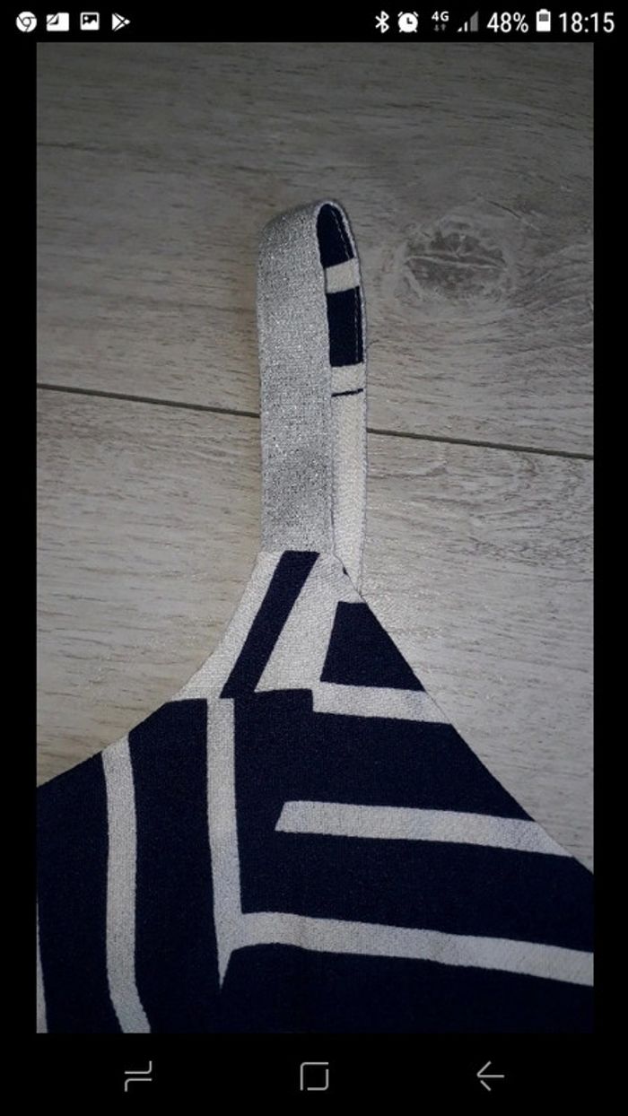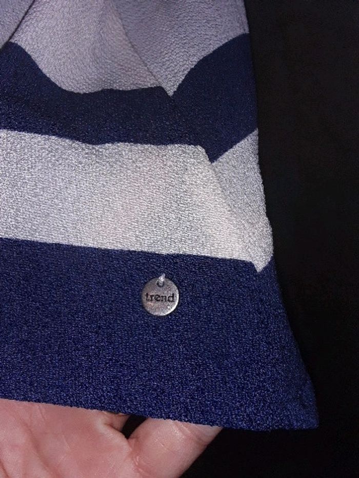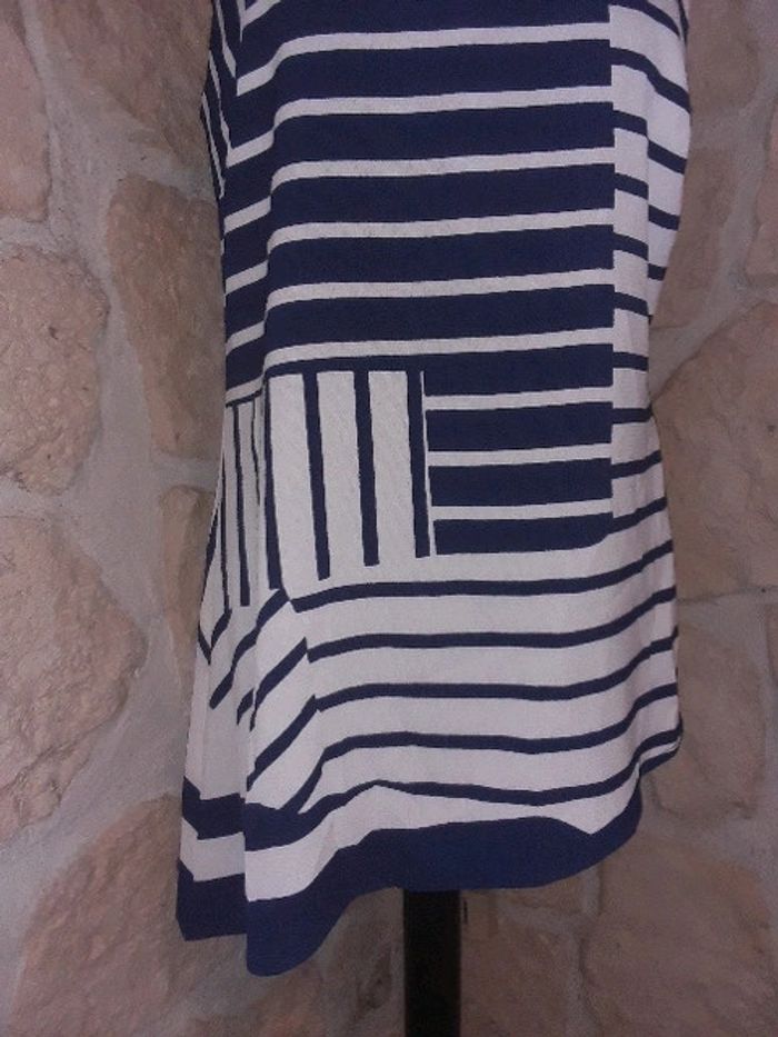 Débardeur asymétrique habillé Trend de chez Miss Capitain taille 38 Neuf jamais porté Bleu marine et blanc. Bretelles argentées. #vayssadefemme38